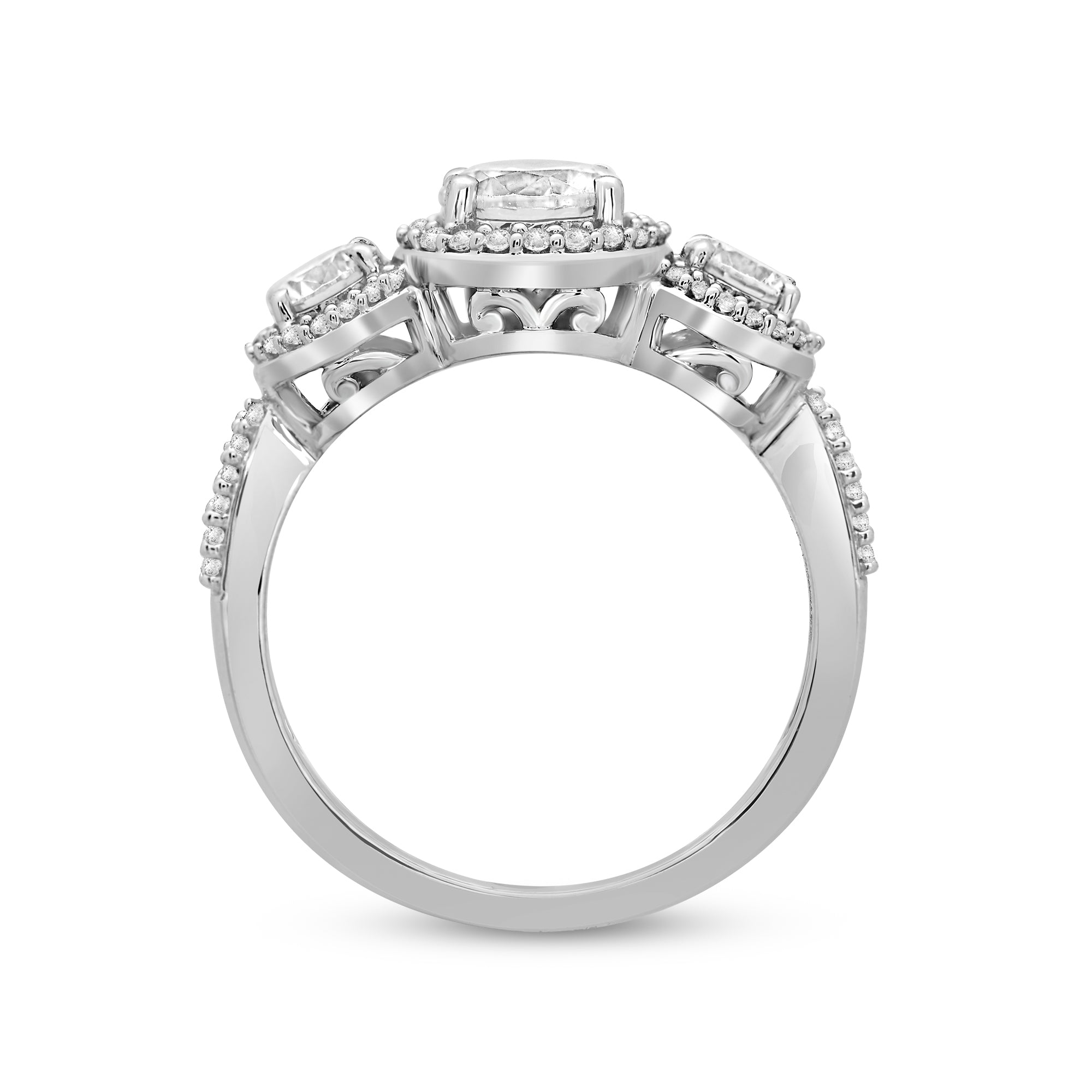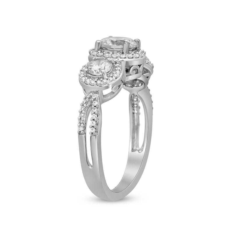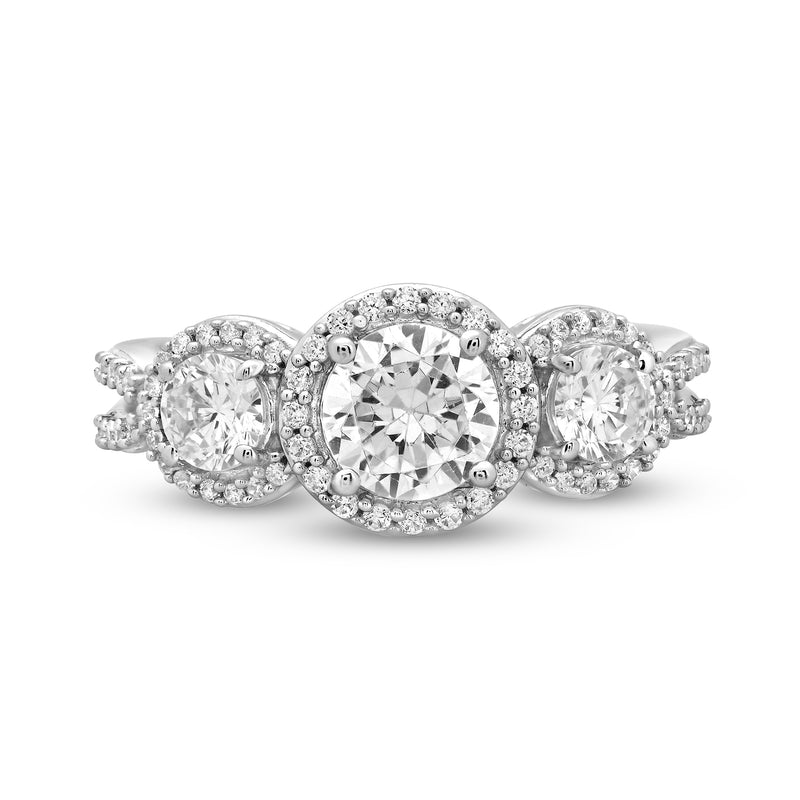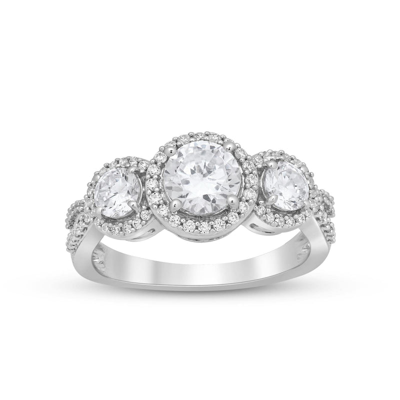 • Sterling Silver With Cubic Zirconia Three Stone Halo Ring