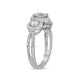 • Load image into Gallery viewer, Jewelili Cubic Zirconia Three Stone Halo Ring in Sterling Silver View 3