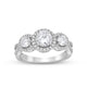 • Load image into Gallery viewer, Jewelili Cubic Zirconia Three Stone Halo Ring in Sterling Silver View 1