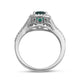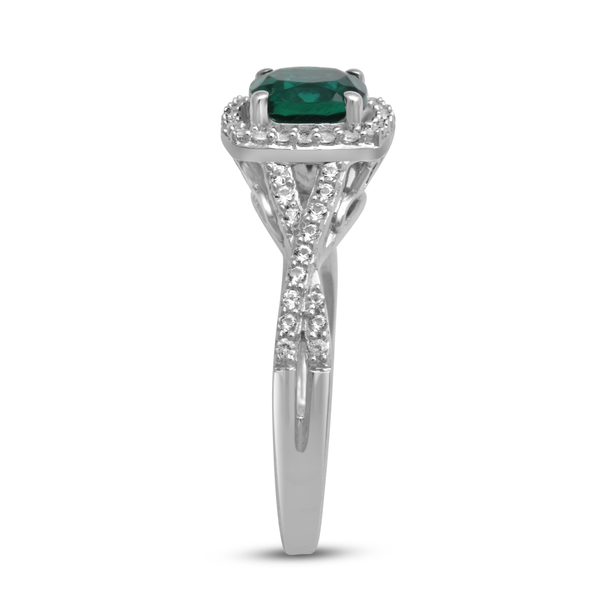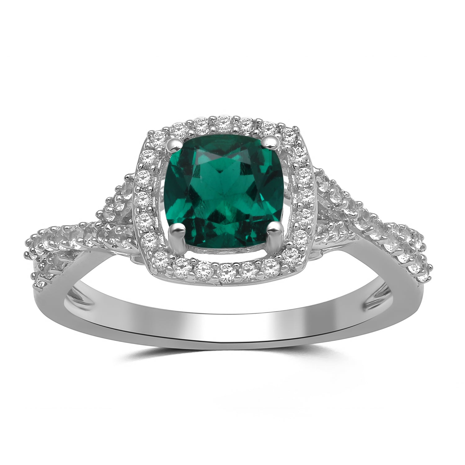 • Sterling Silver with Cushion Cut Created Emerald and Round Created White Sapphire Engagement Ring