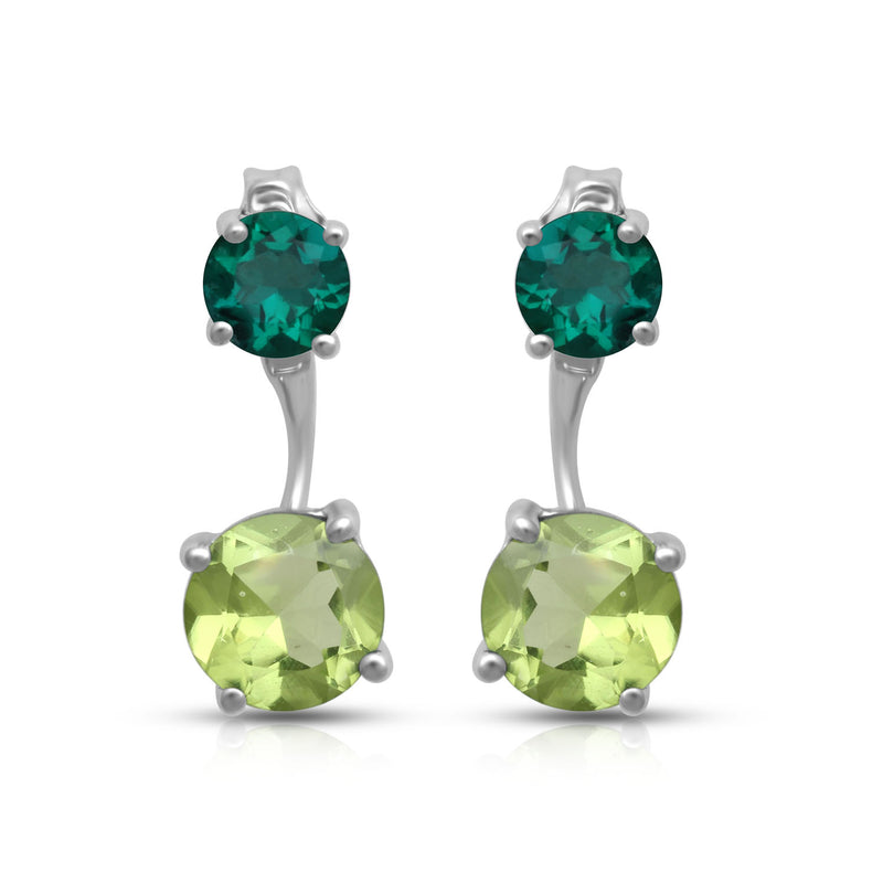 Jewelili Sterling Silver With Created Emerald and Peridot Earrings