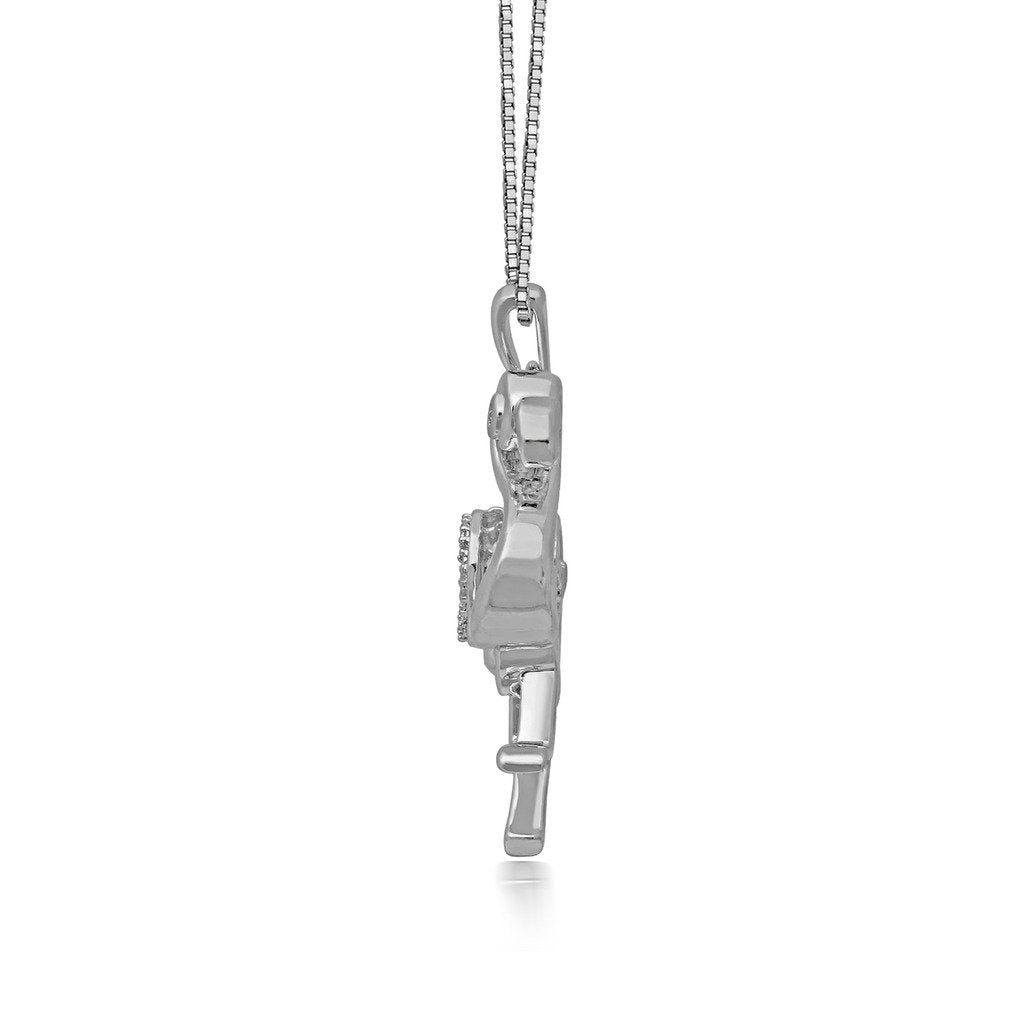 Jewelili Sterling Silver with Diamonds Flamingo Pendant Necklace