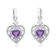 • Load image into Gallery viewer, Jewelili Sterling Silver with Heart Amethyst and White Cubic Zirconia Filigree Dangle Earrings