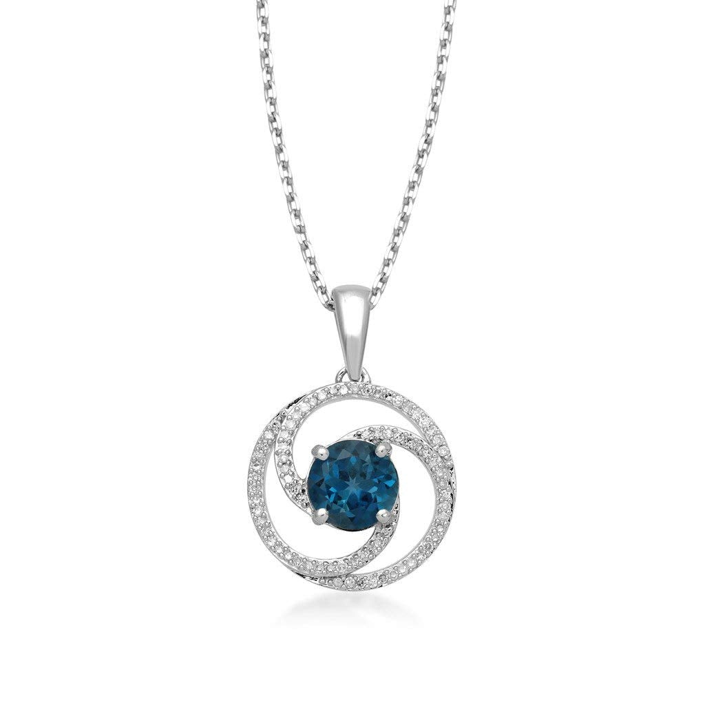 Jewelili Sterling Silver with London Blue Topaz and 1/6 CTTW Natural White Diamonds Pendant Necklace