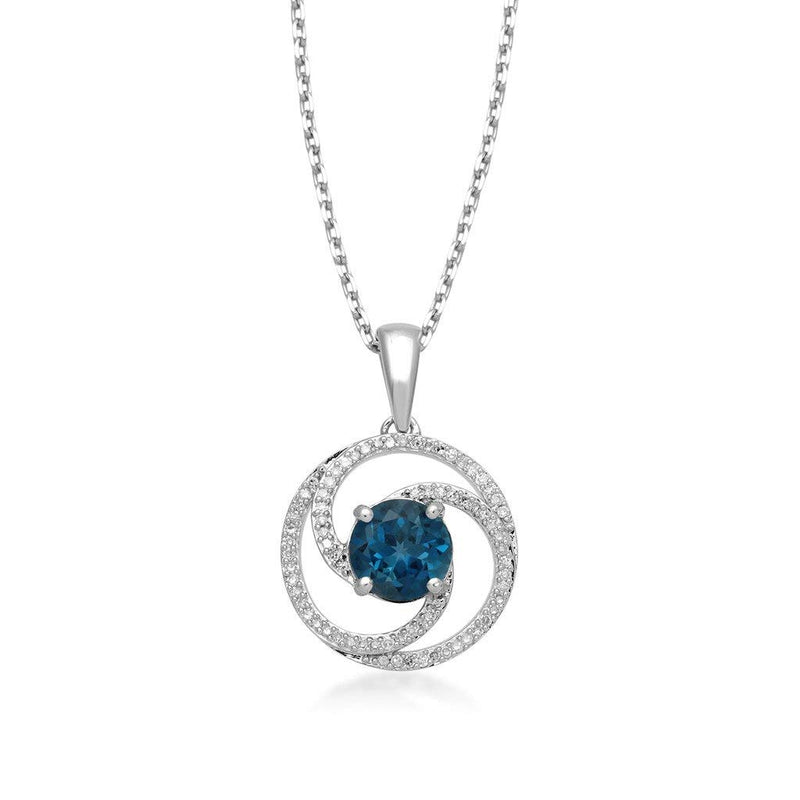• Sterling Silver with London Blue Topaz and 1/6 Cttw Natural White Diamonds Pendant Necklace