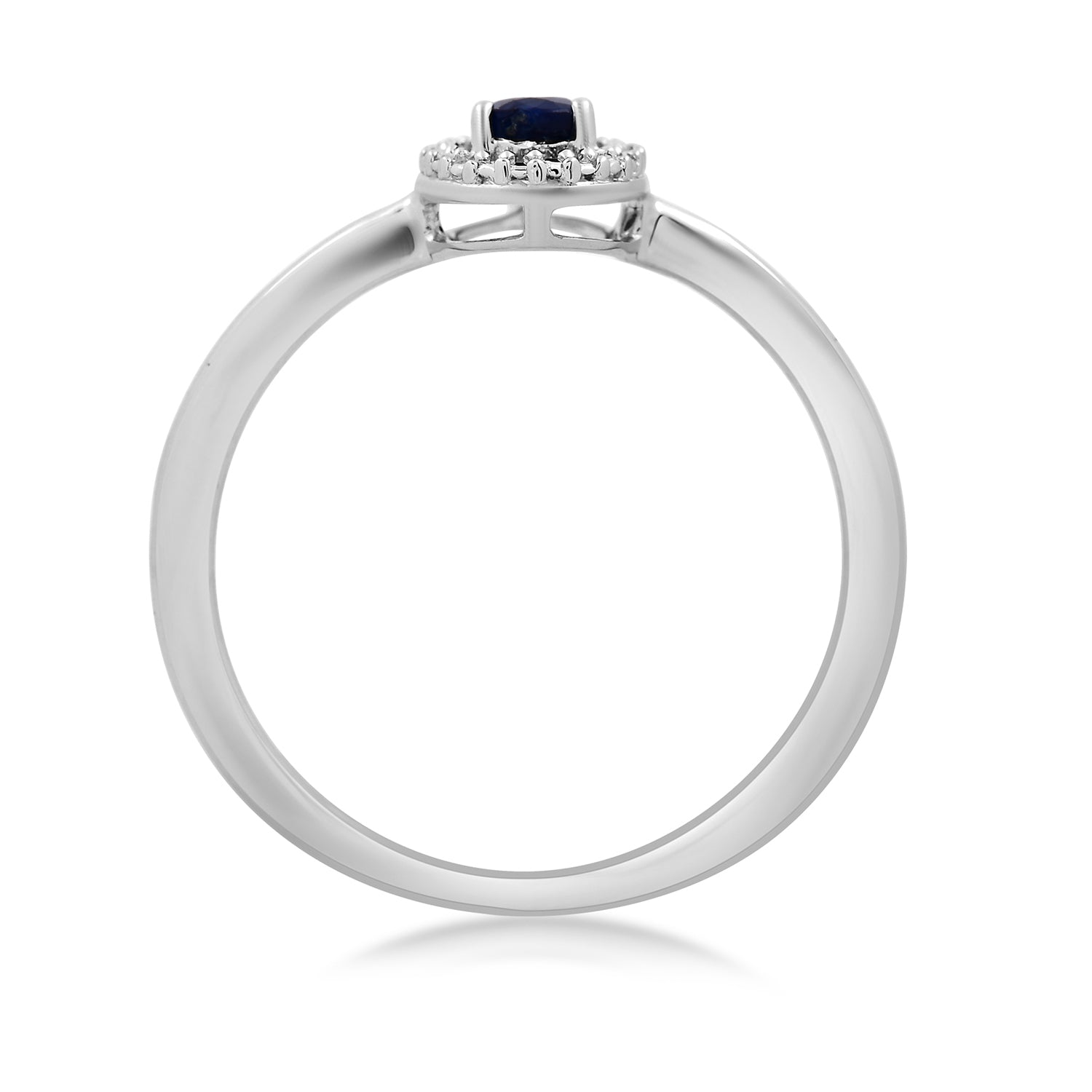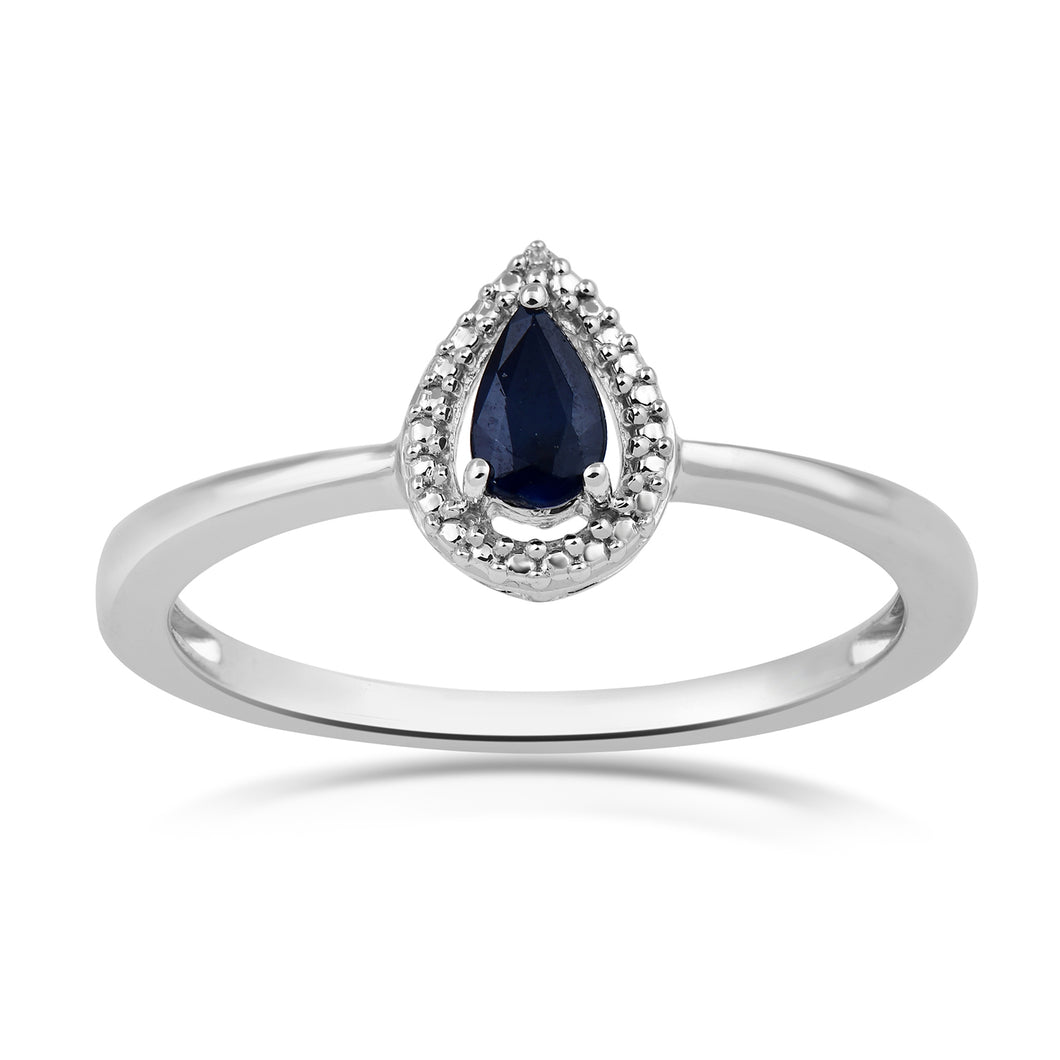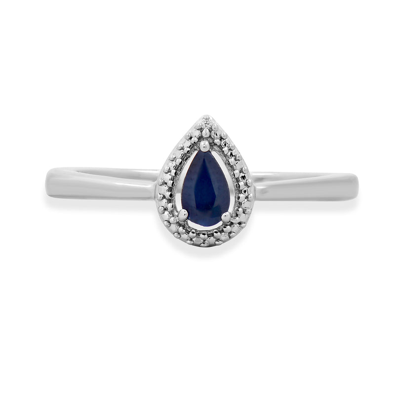 • Sterling Silver With Natural Diamonds and Genuine Blue Sapphire Teardrop Ring