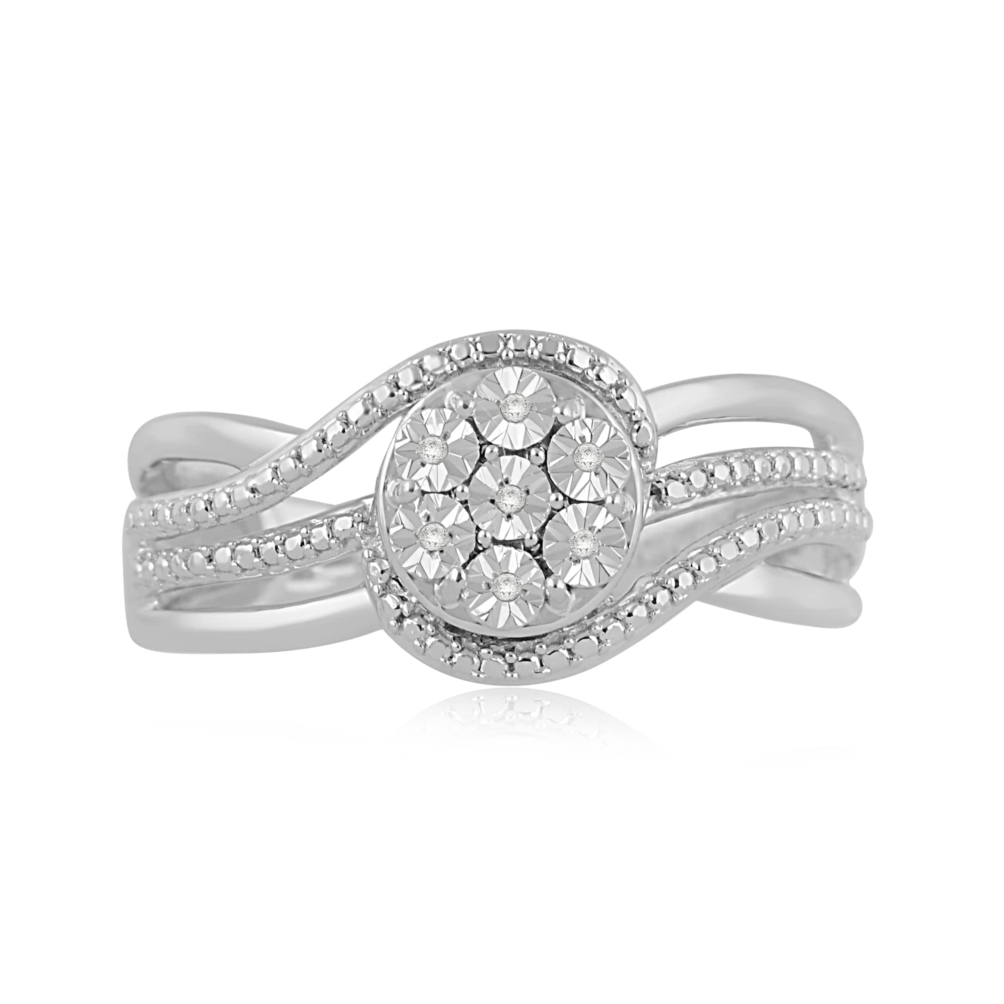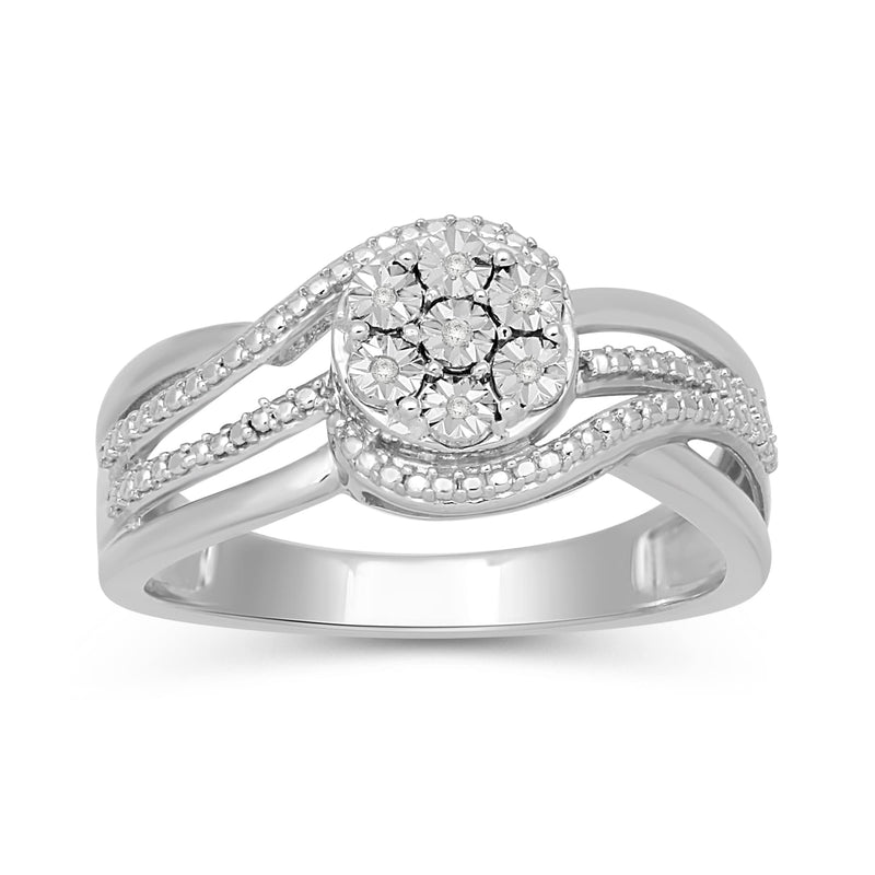Jewelili Sterling Silver With Natural White Diamonds Ring