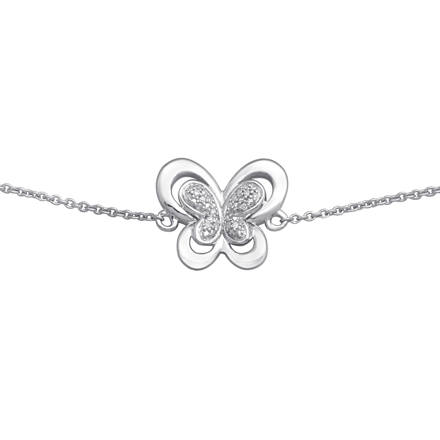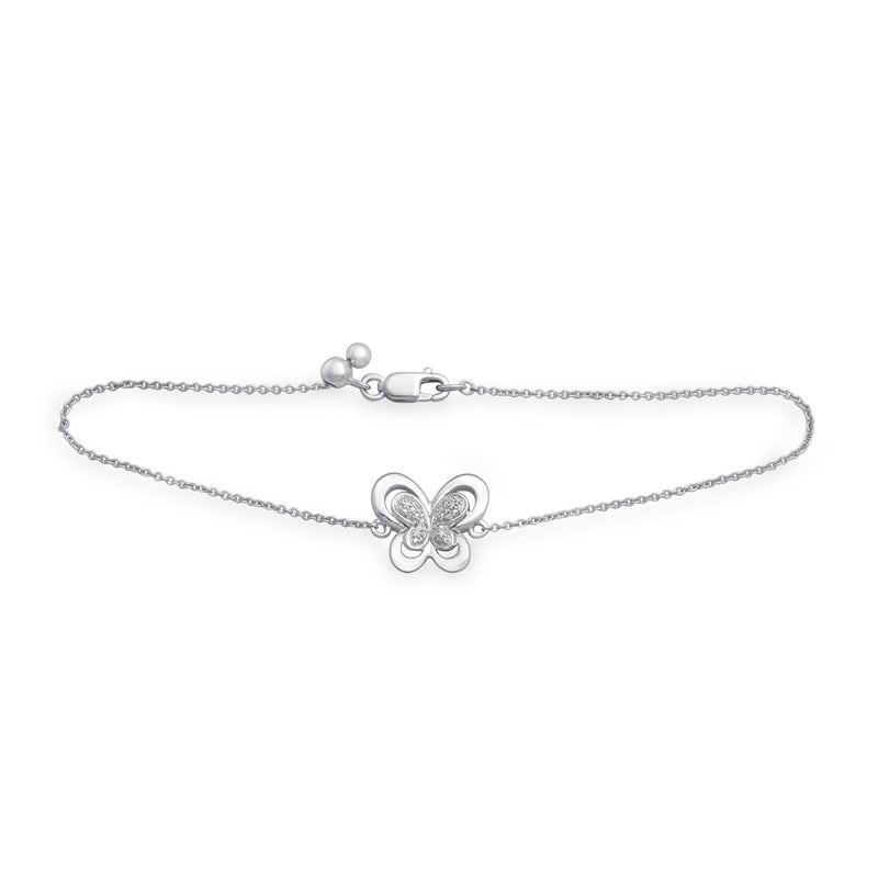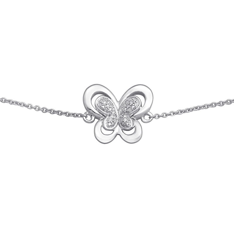 Jewelili Sterling Silver With Natural White Diamonds Butterfly Bracelet
