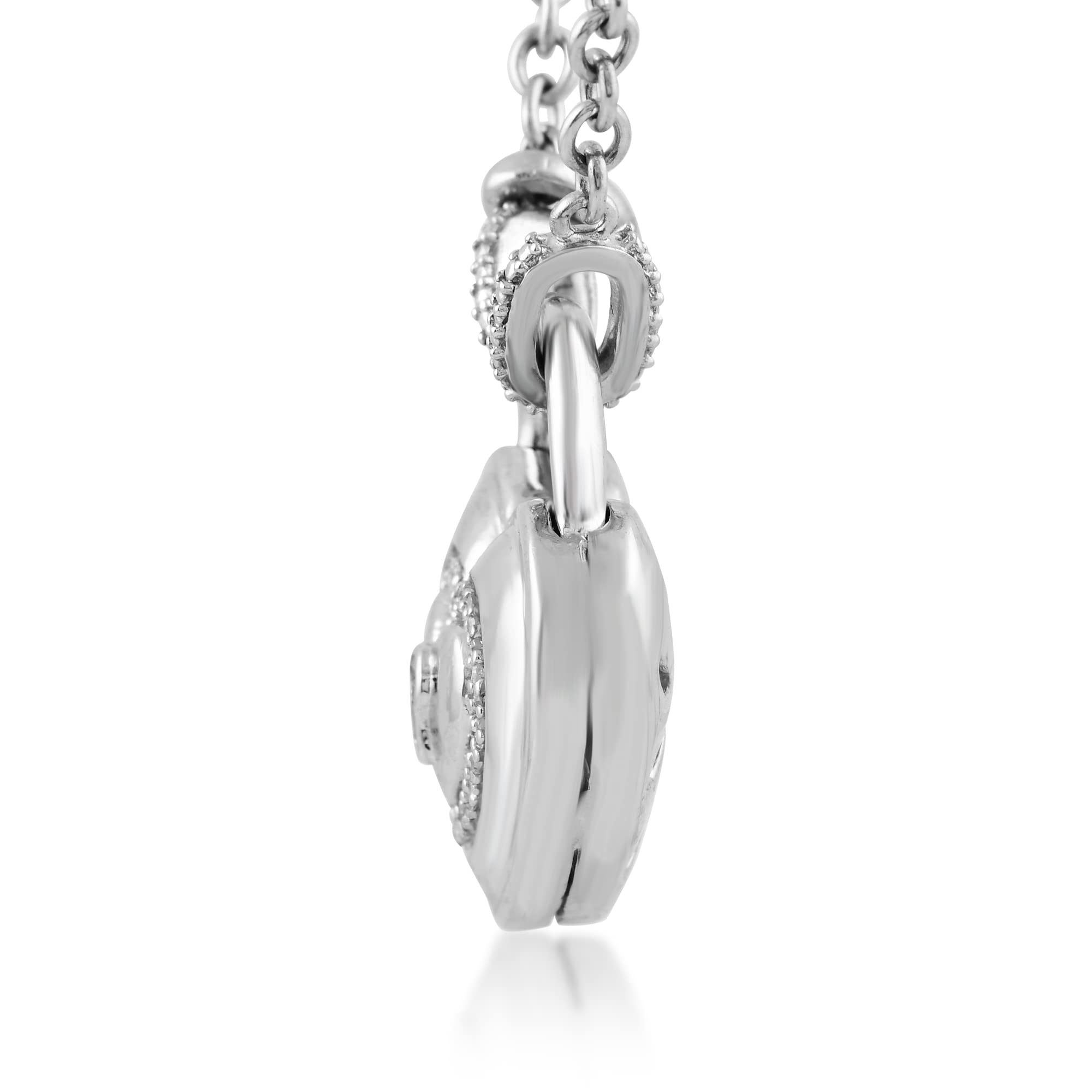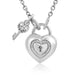 • Sterling Silver With Natural White Diamonds Heart Lock Key Pendant Necklace