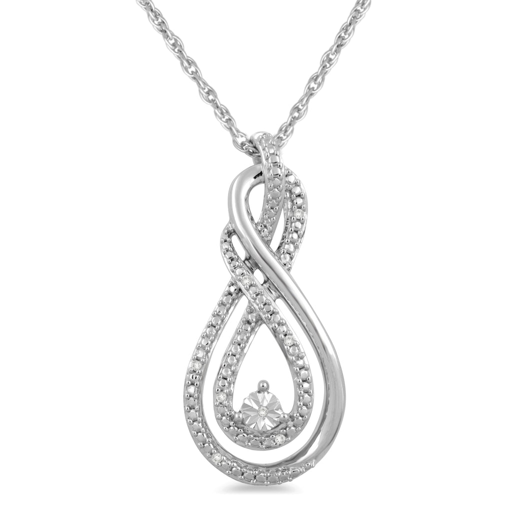 Jewelili Sterling Silver With Natural White Diamonds Pendant Necklace