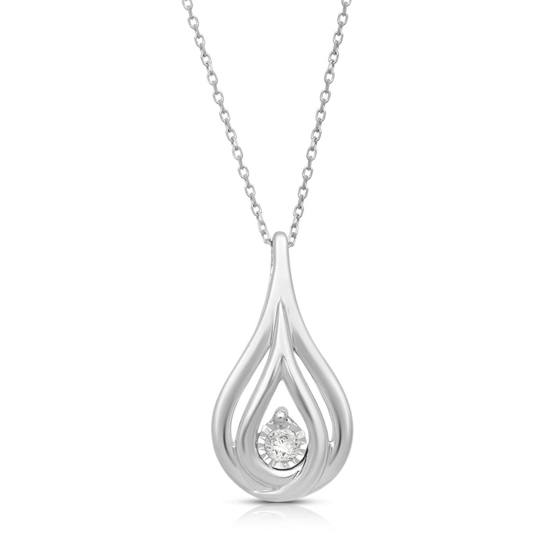 • Sterling Silver Teardrop Pendant Necklace studded with Round Natural White Diamond Accent