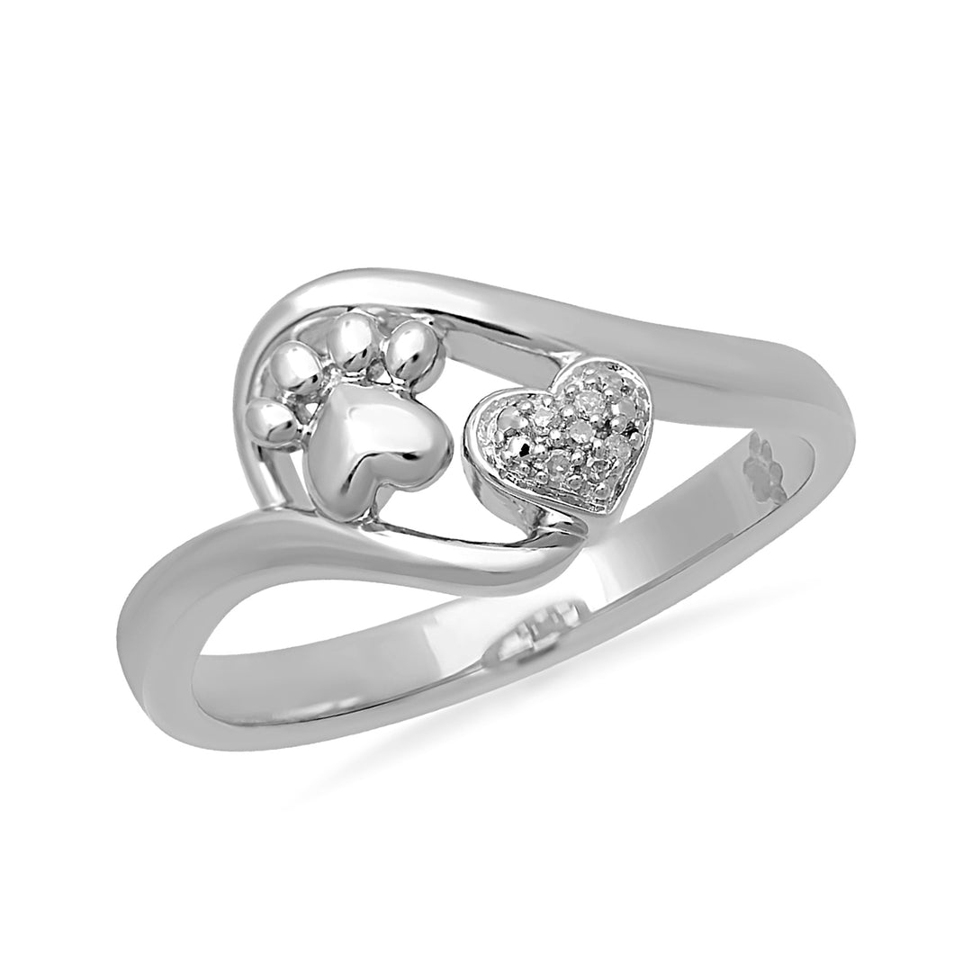 Jewelili Sterling Silver with Natural White Round Diamonds Dog Paw Ring