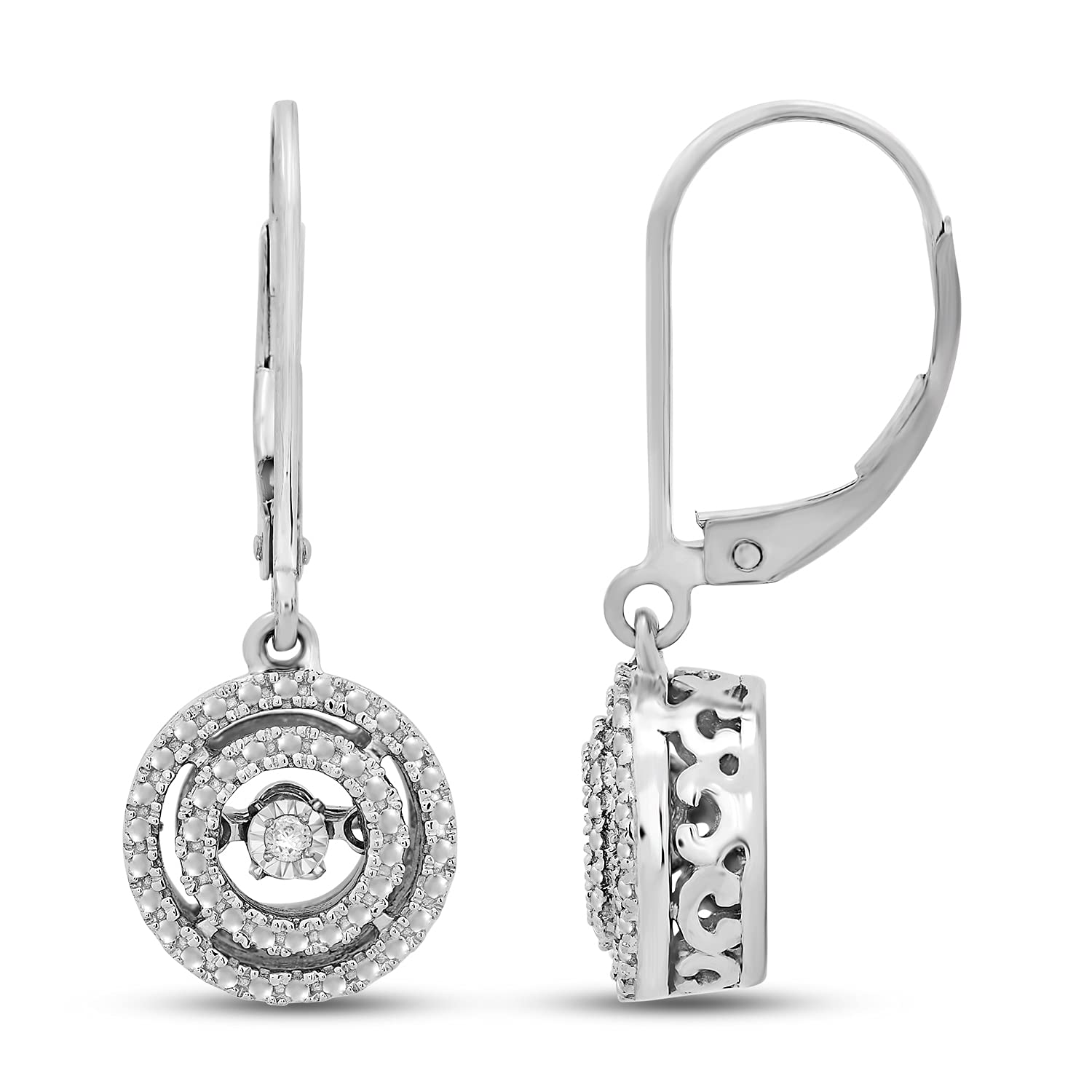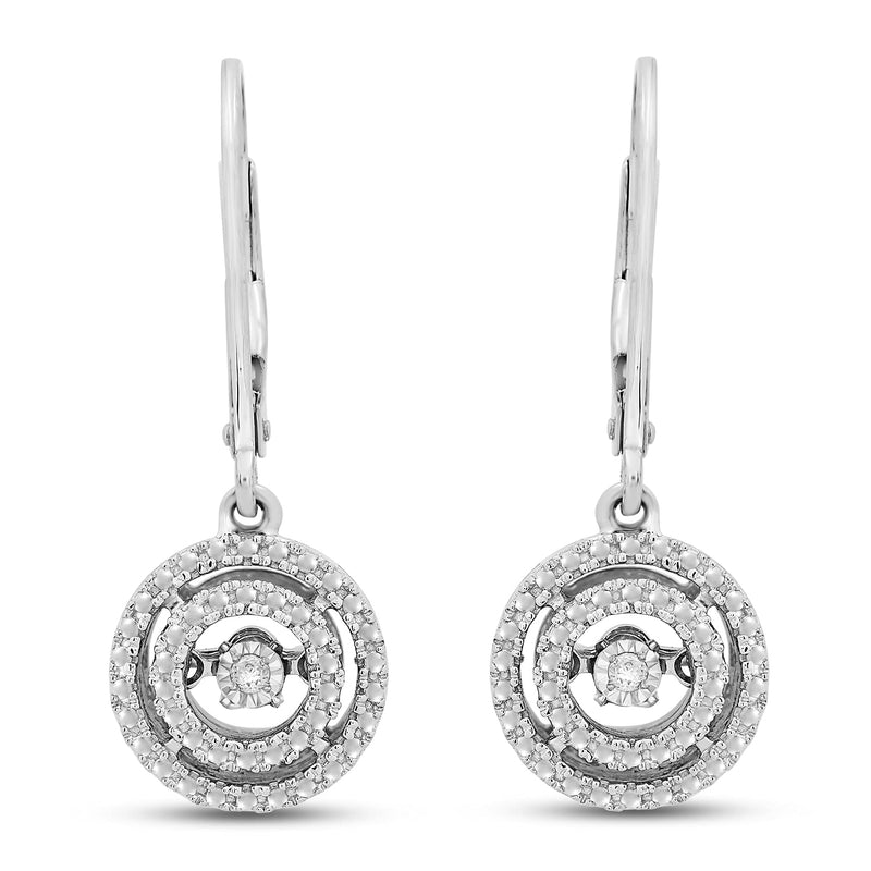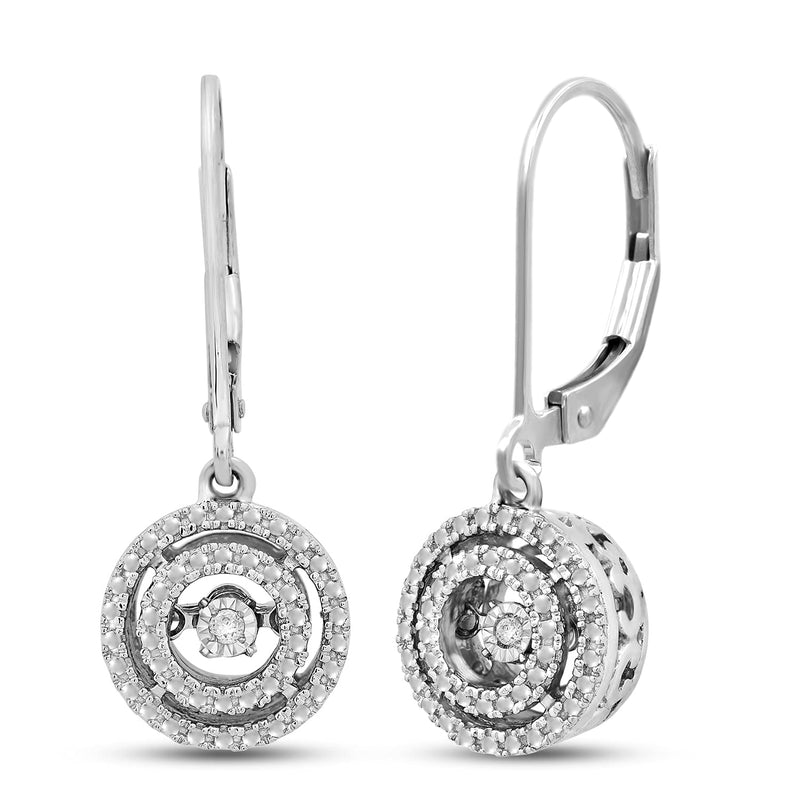 Jewelili Sterling Silver with Natural White Round Diamonds Double Halo Dangle Earrings