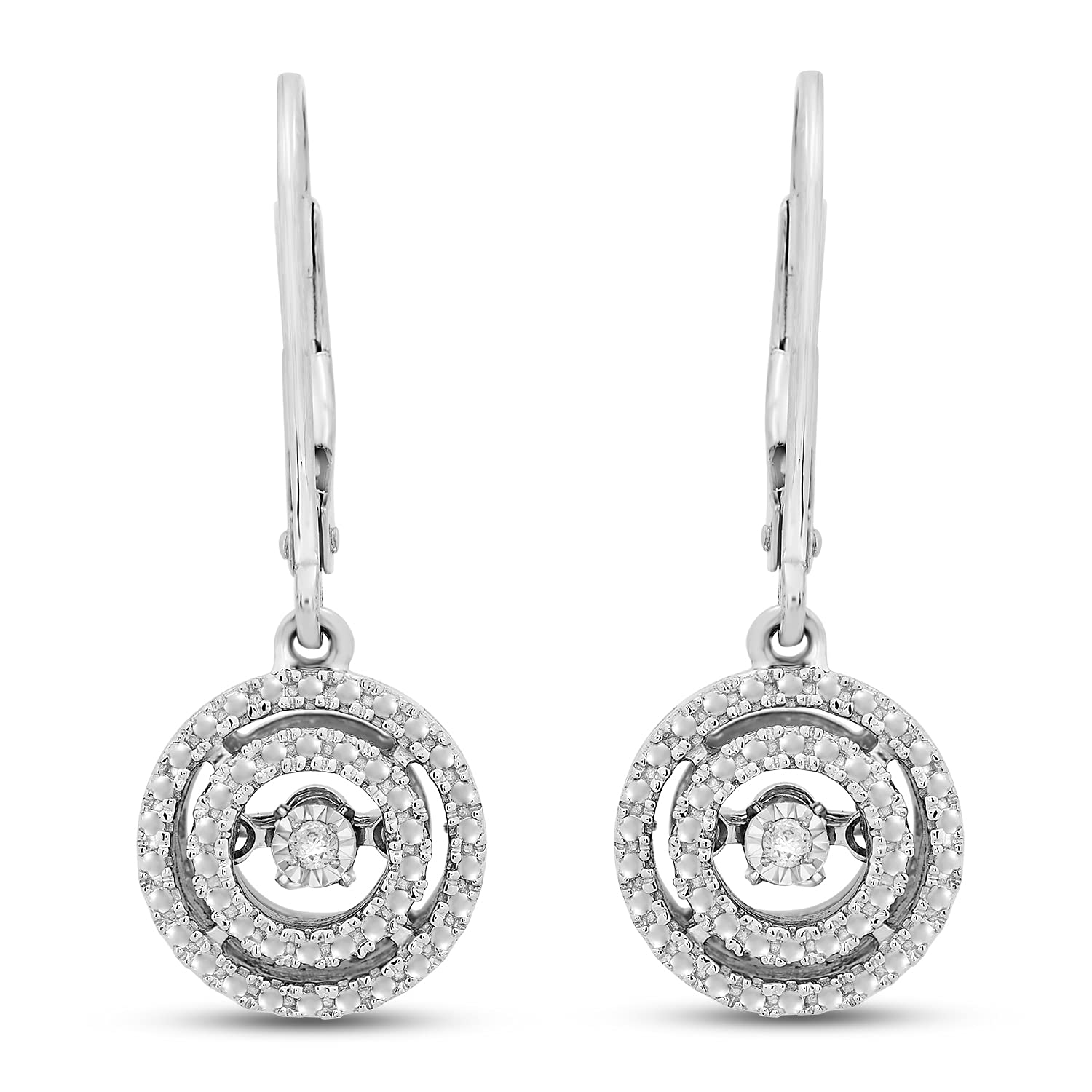 • Sterling Silver with Natural White Round Diamonds Double Halo Dangle Earrings