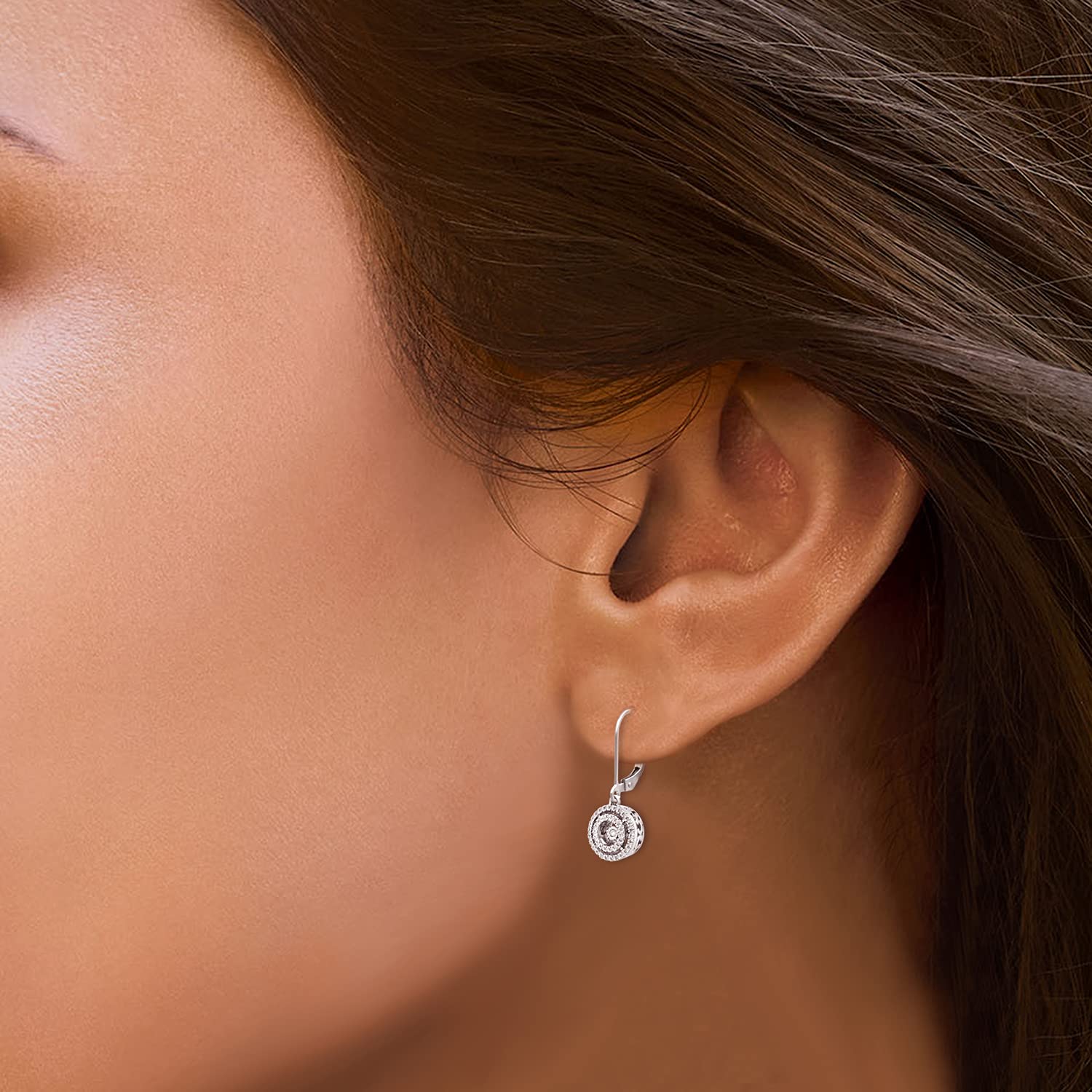 Details: Sterling Silver with Natural White Round Diamonds Double Halo Dangle Earrings