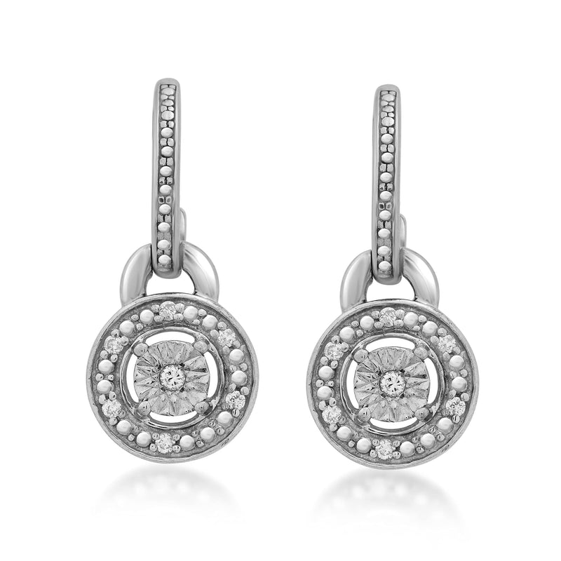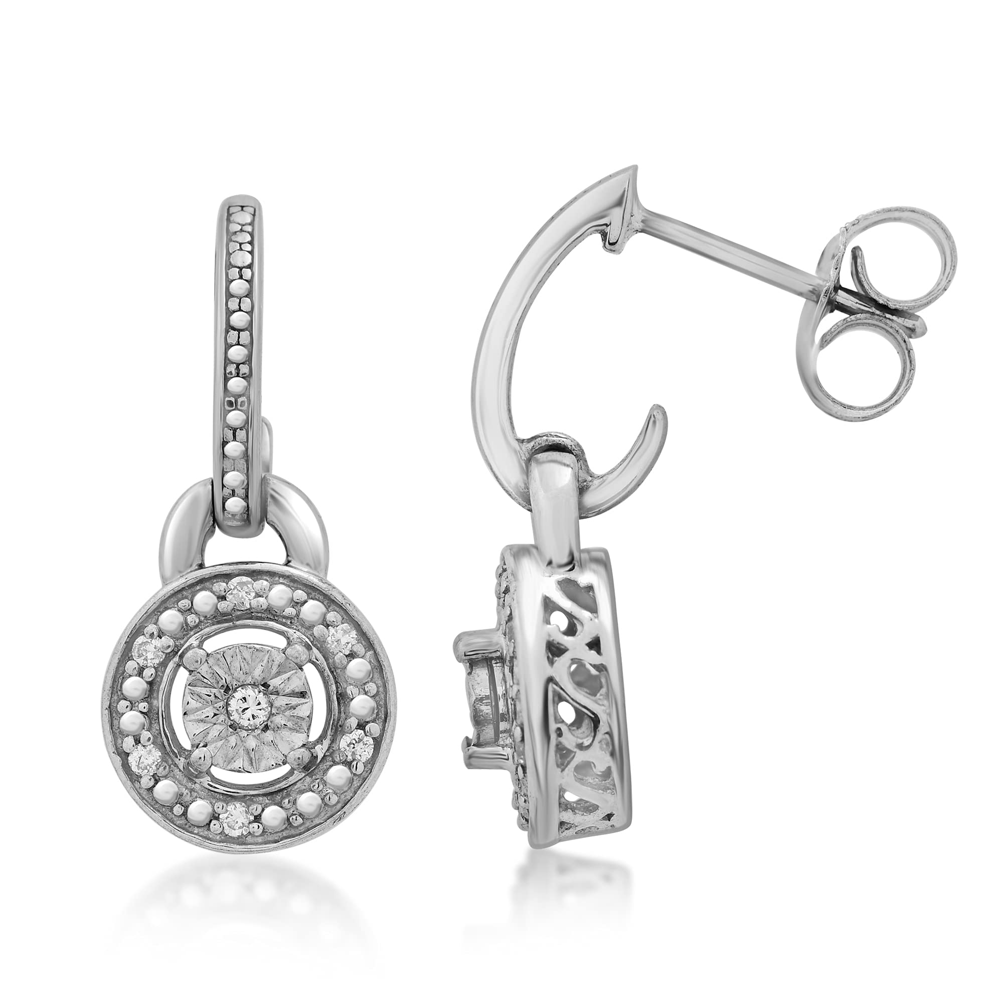• Sterling Silver with Natural White Round Diamonds Accent Dangle Earrings