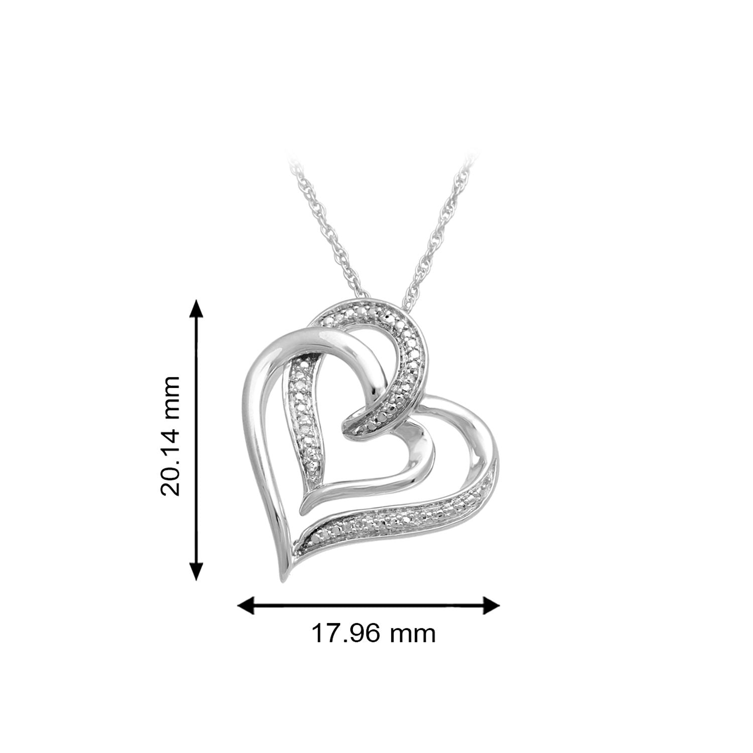Jewelili Sterling Silver With Natural White Round Diamonds Heart Shape Pendant Necklace