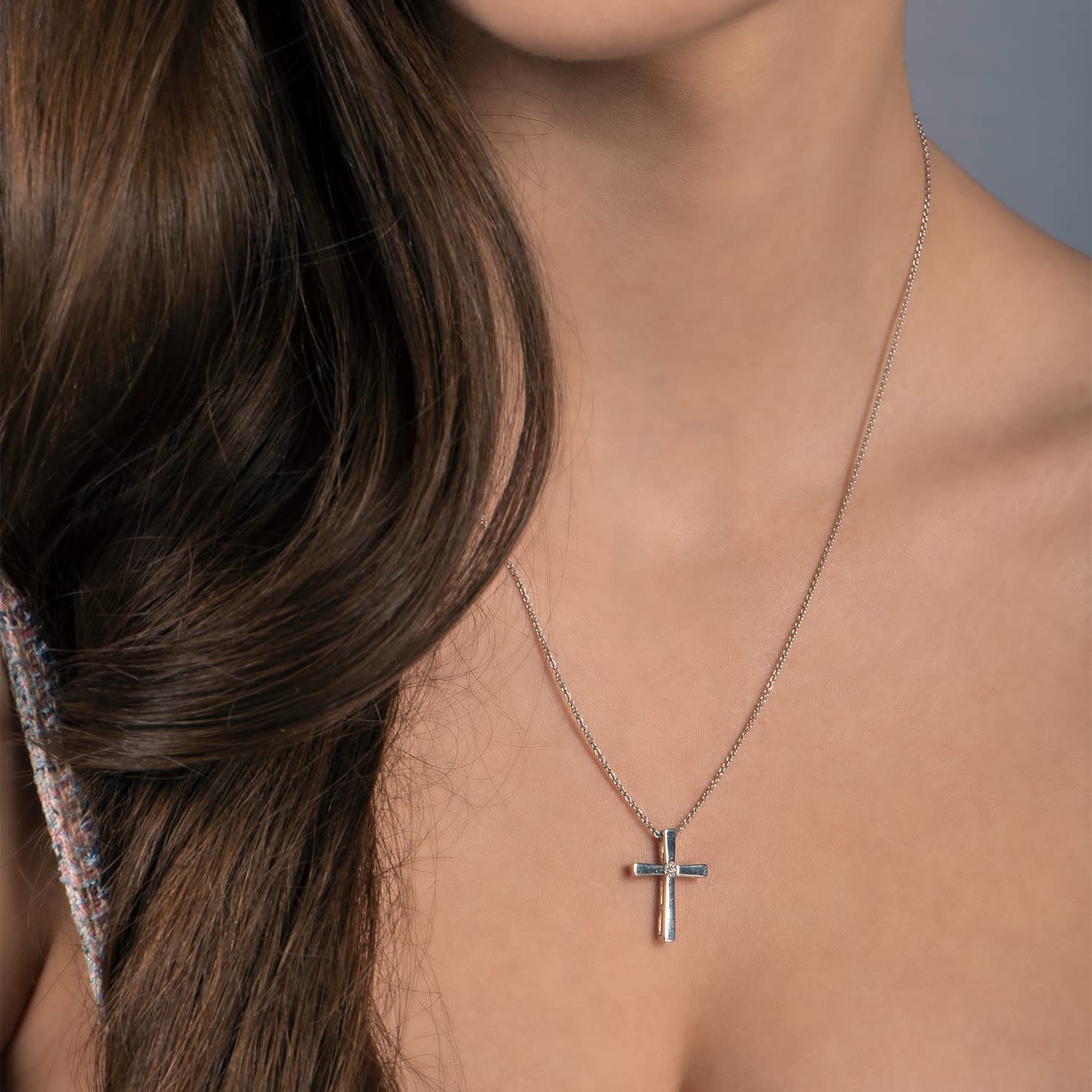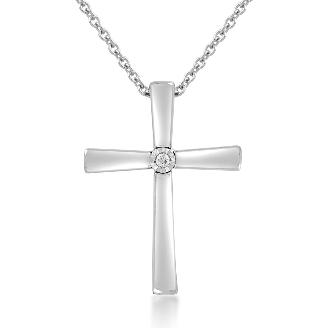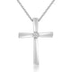 • Sterling Silver with Natural White Round Shape Diamond Accent Cross Pendant Necklace