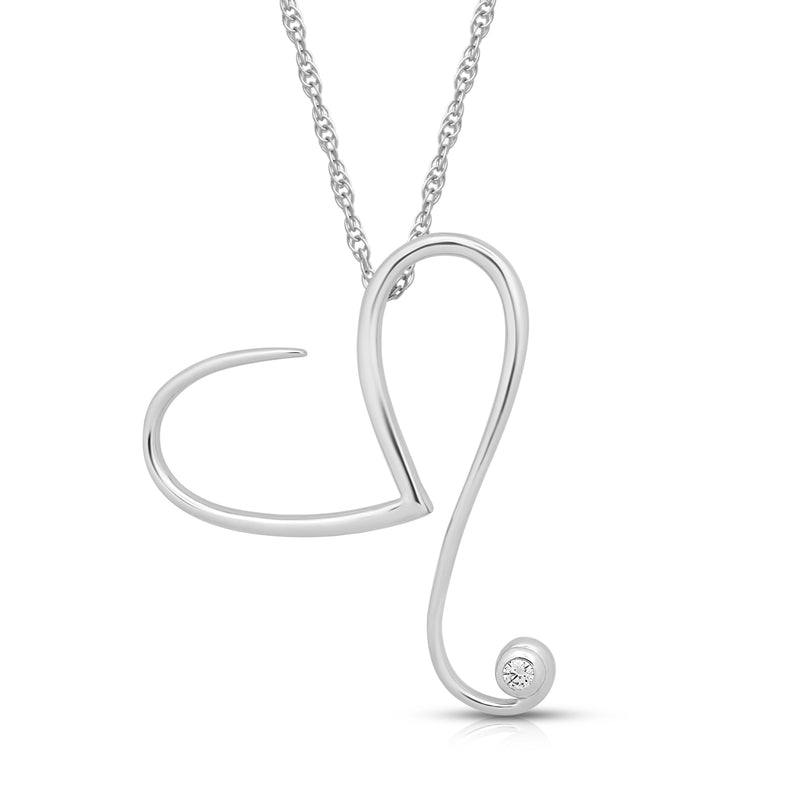 • Sterling Silver with Natural White Round Shape Diamond Accent Steal Her Heart Pendant Necklace