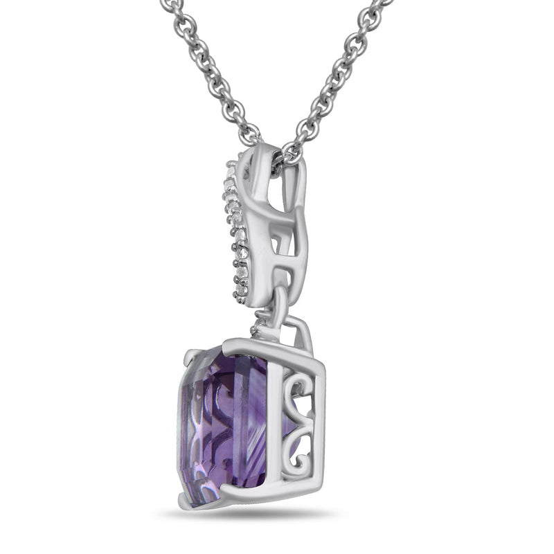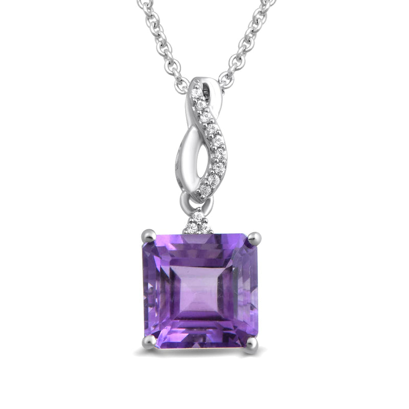 • Sterling Silver With Octagon Amethyst and Created White Sapphire Pendant Necklace