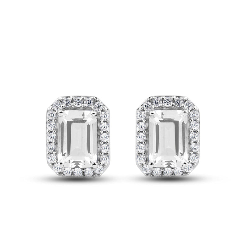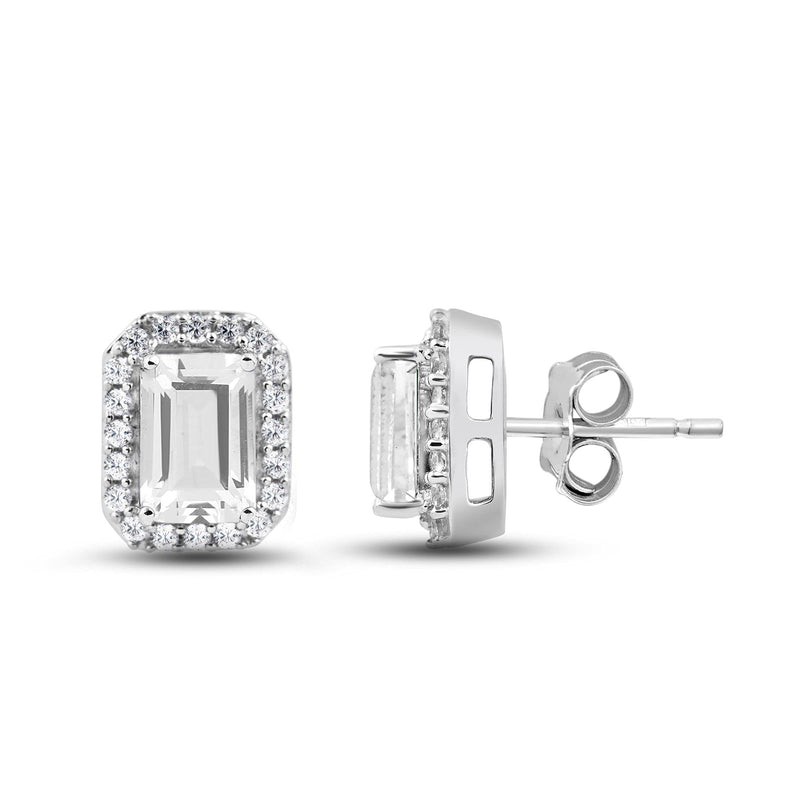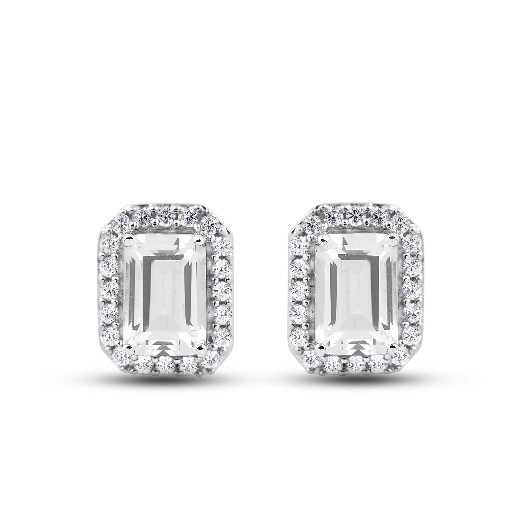 • Sterling Silver with Octagon Shape and Round Shape Created White Sapphire Stud Earrings