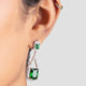• Load image into Gallery viewer, Jewelili Long Dangle Earrings with Octagon Simulated Green Glass Emerald and Clear Crystal in Sterling Silver View 3