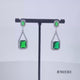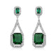 • Sterling Silver With Octagon Simulated Green Glass Emerald and Clear Crystal Long Dangle Earrings
