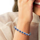 • Load image into Gallery viewer, Jewelili Link Bracelet with Oval Created Ceylon Sapphire and Natural White Round Diamonds in Sterling Silver 7.5" View 3