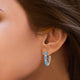• Load image into Gallery viewer, Jewelili Hoop Earrings with Oval Cut Swiss Blue Topaz and Round Created White Sapphire over Sterling Silver view 2