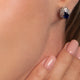 • Load and play video in Gallery viewer, Jewelili Sterling Silver with Oval Shape Created Blue Sapphire and Natural White Round Shape Diamonds Stud Earrings