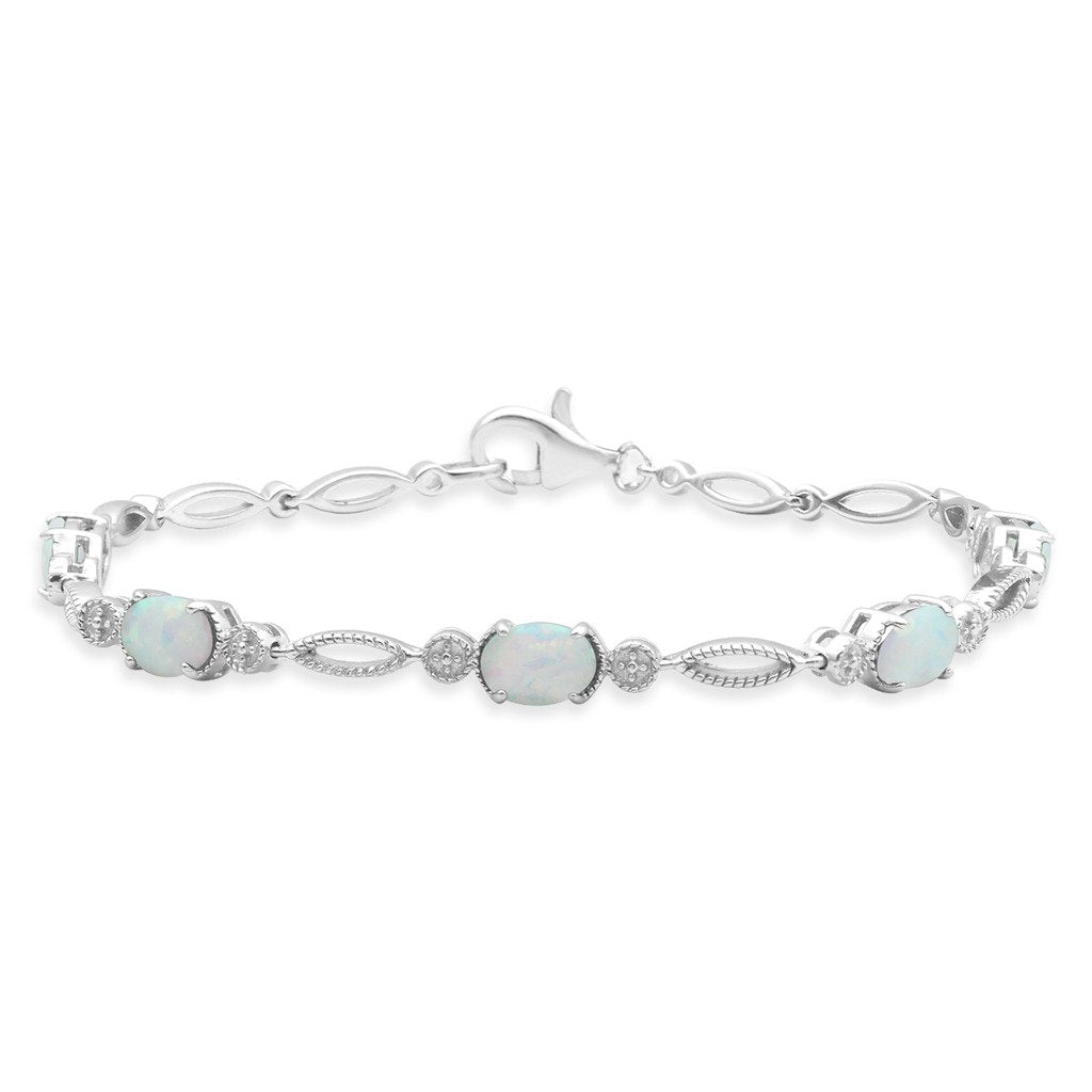Details: Sterling Silver with Oval Shape Created Opal Fashion Bracelet, 7.5 Inch