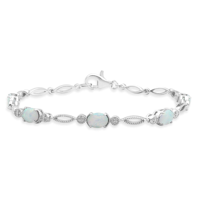 Jewelili Sterling Silver with Oval Shape Created Opal Fashion Bracelet, 7.5 Inch