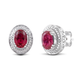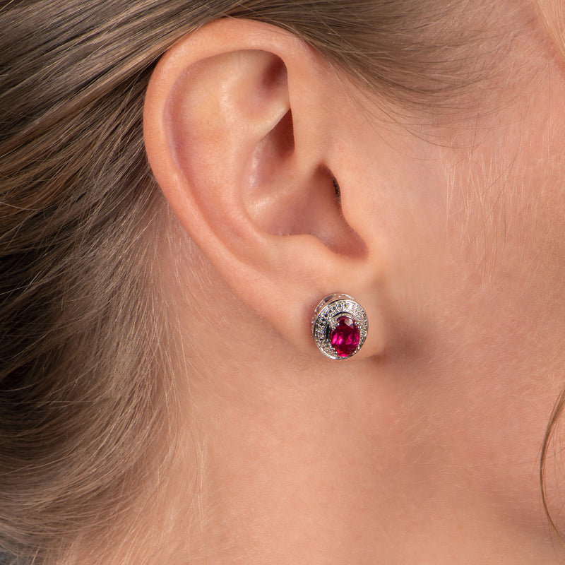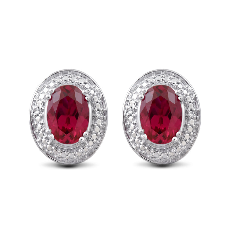 • Sterling Silver with Oval Shape Created Ruby and Natural White Round Diamond Accent Stud Earrings