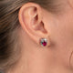 • Load and play video in Gallery viewer, Jewelili Sterling Silver with Oval Shape Created Ruby and Natural White Round Diamonds Stud Earrings