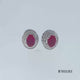 Jewelili Sterling Silver with Oval Shape Created Ruby and Natural White Round Diamonds Stud Earrings