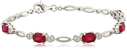Jewelili Sterling Silver With Oval Shape Created Ruby Fashion Bracelet, 7.5 Inch