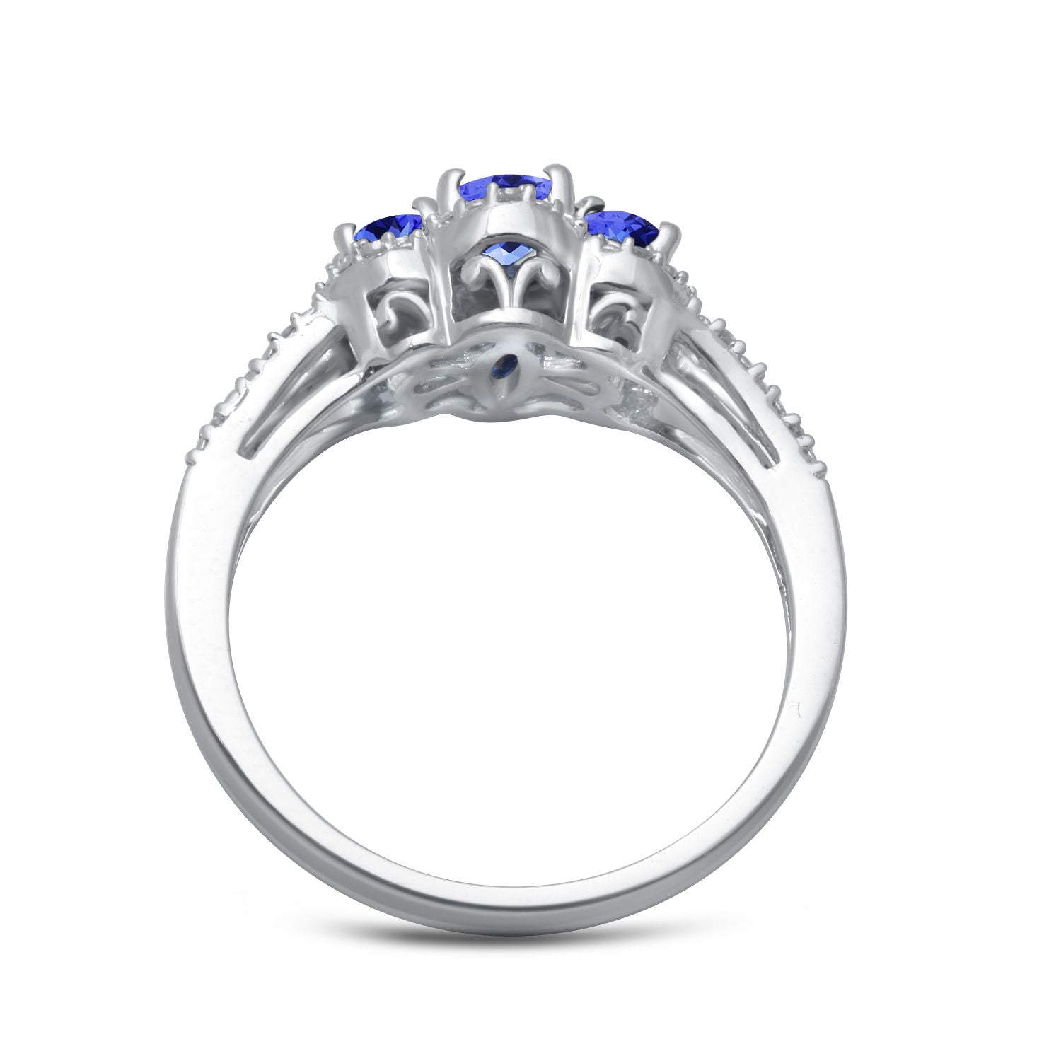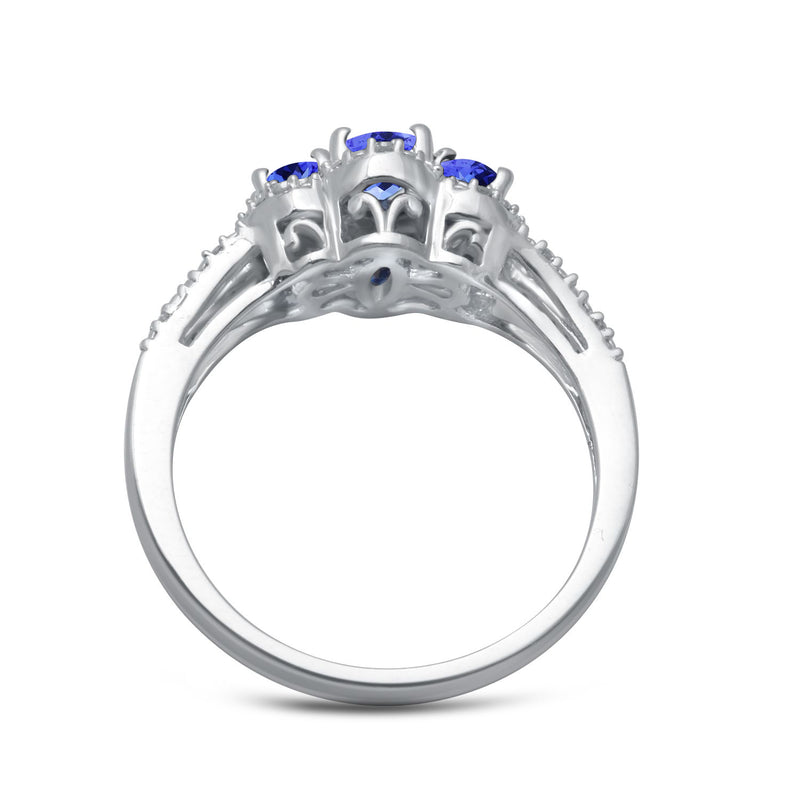 • Sterling Silver with Oval Shape Tanzanite and Natural Round Diamonds Ring