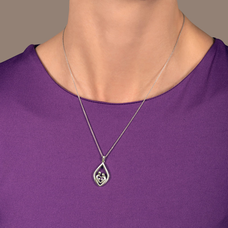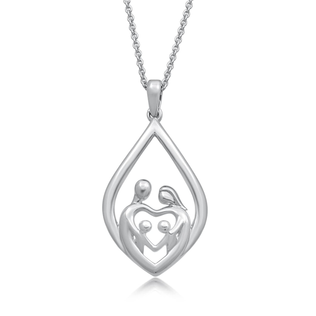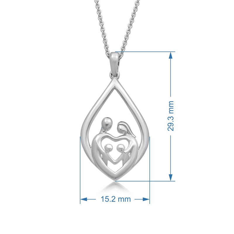 • Sterling Silver With Parent and Two Children Family Necklace Pendant