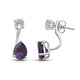 • Load image into Gallery viewer, Jewelili Teardrop Drop Earrings with Pear Shape Amethyst and Round Shape Created White Sapphire Jacket in Sterling Silver View 1