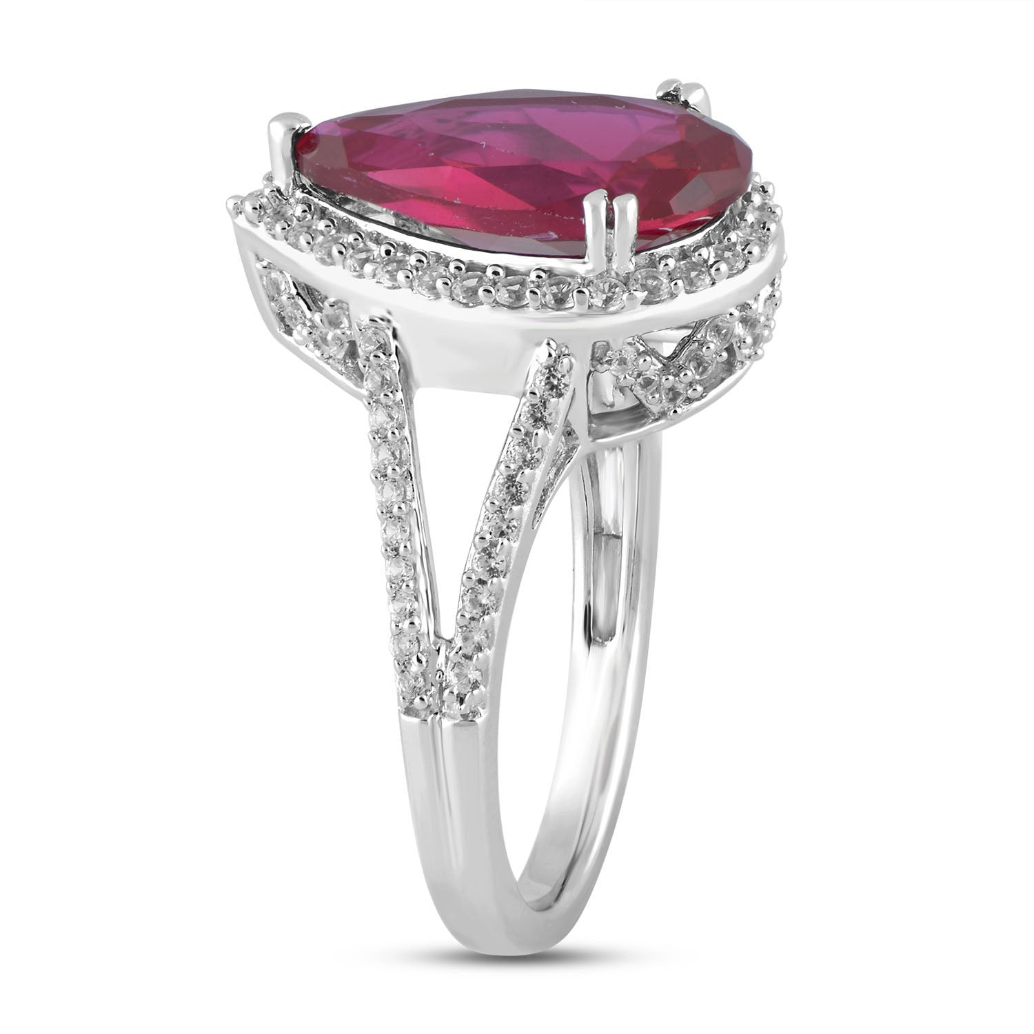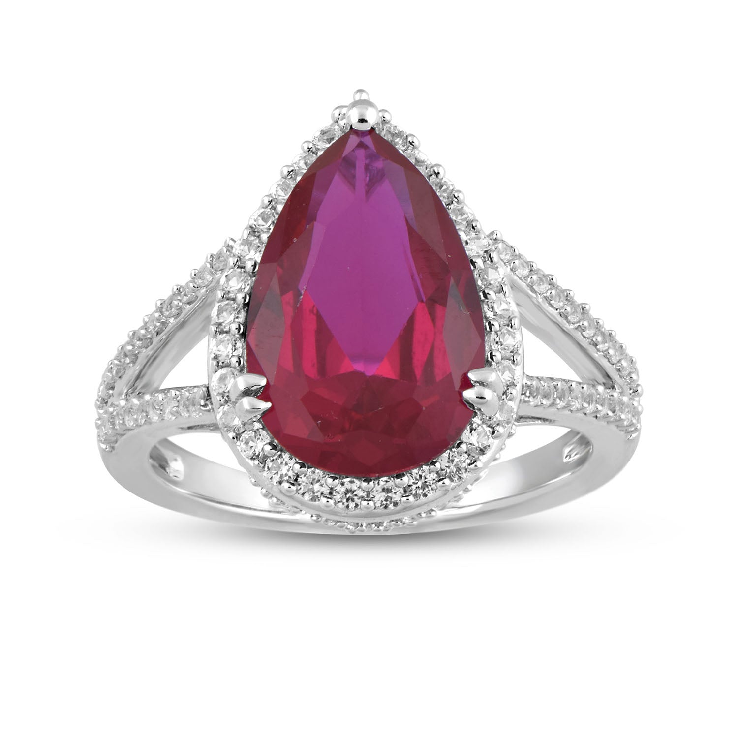 Details: Sterling Silver with Pear Shape Created Ruby and Round Created White Sapphire Teardrop Ring
