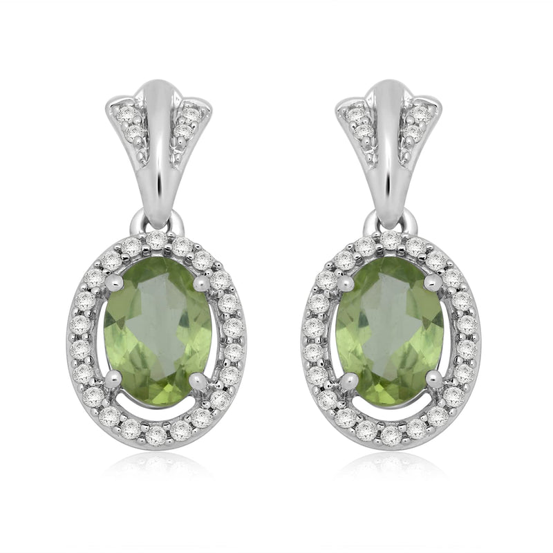• Load image into Gallery viewer, Jewelili Dangle Earrings with Peridot and Created White Sapphire in Sterling Silver View 1