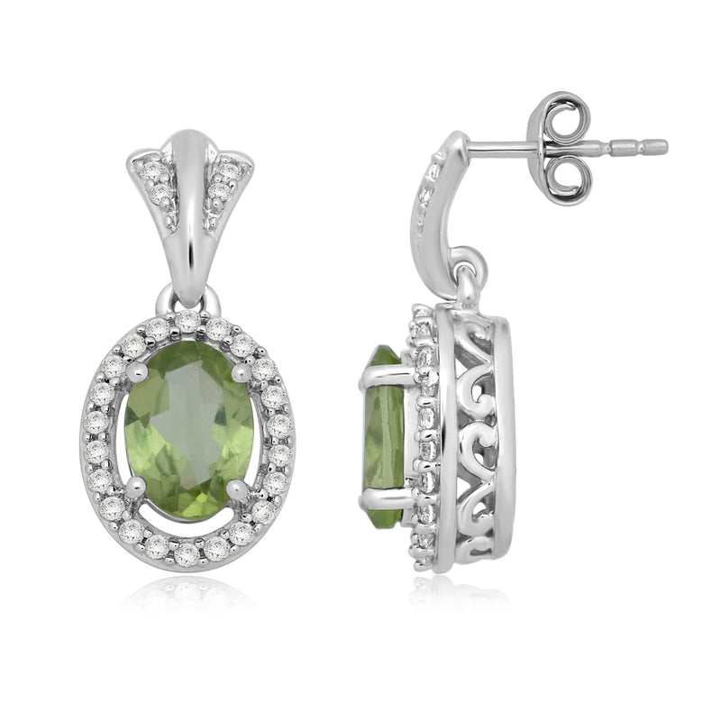 • Load image into Gallery viewer, Jewelili Dangle Earrings with Peridot and Created White Sapphire in Sterling Silver View 2