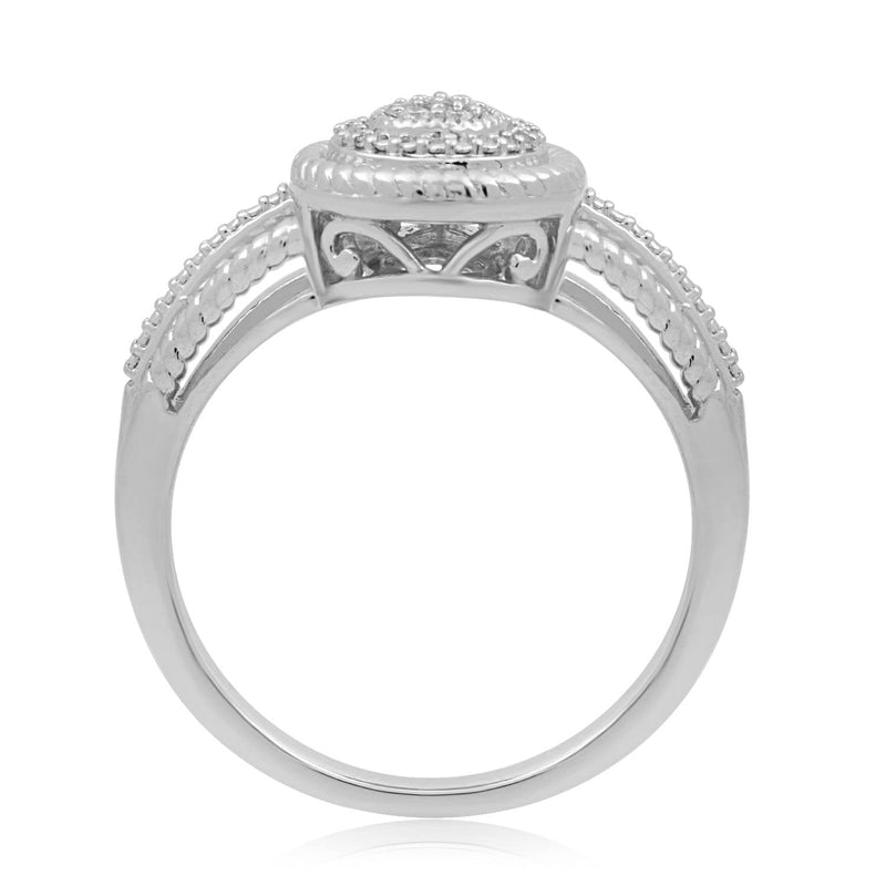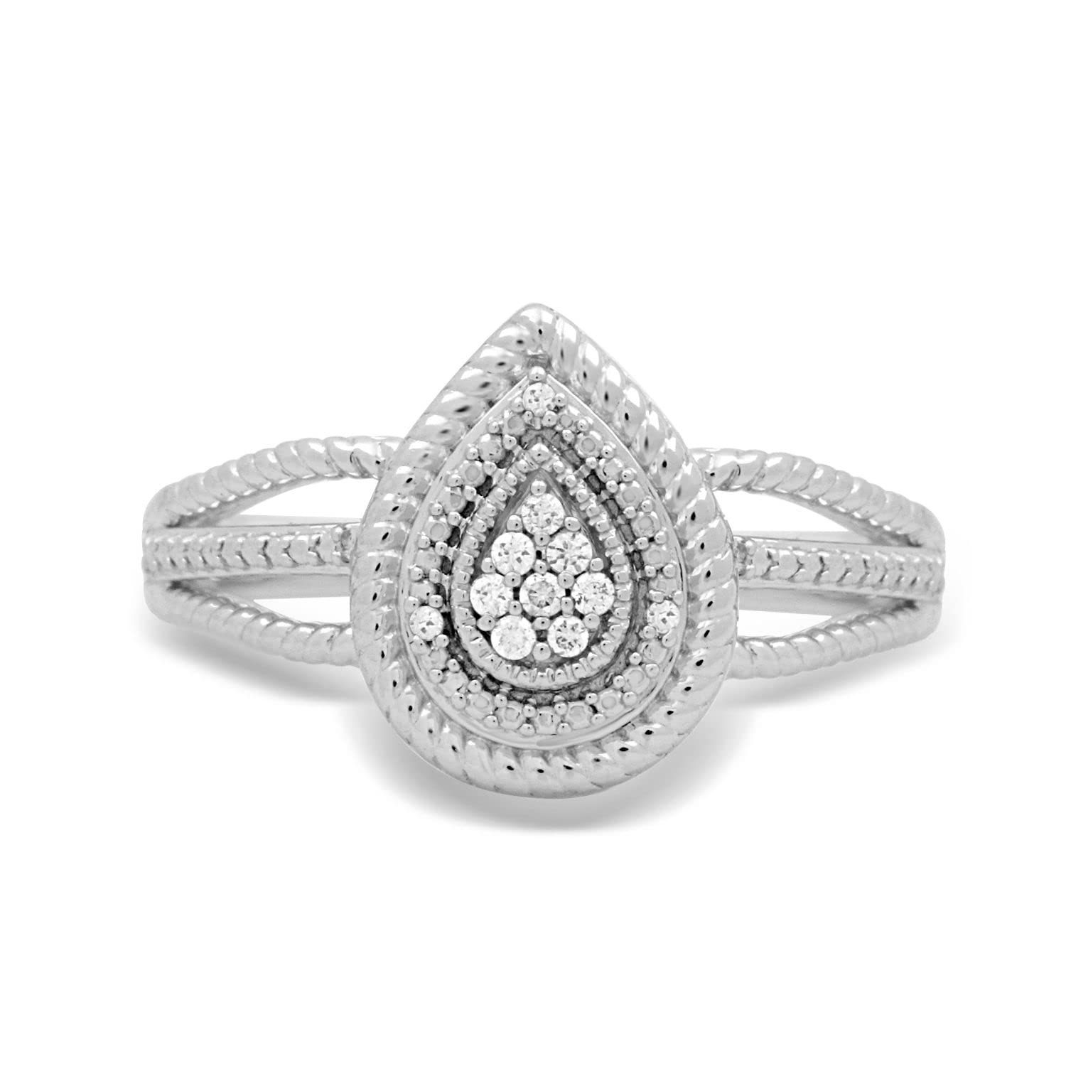 Details: Sterling Silver With Round Cut Diamonds Teardrop Ring