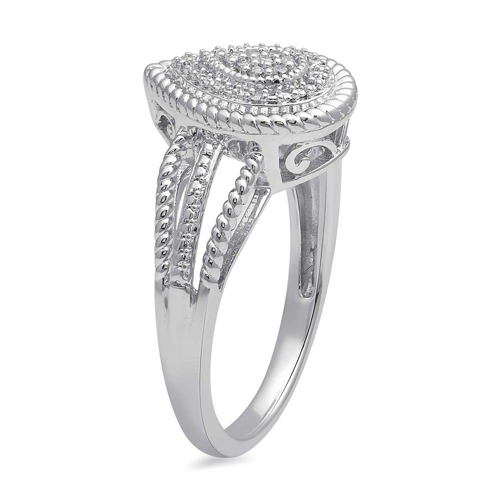 Jewelili Sterling Silver With Round Cut Diamonds Teardrop Ring