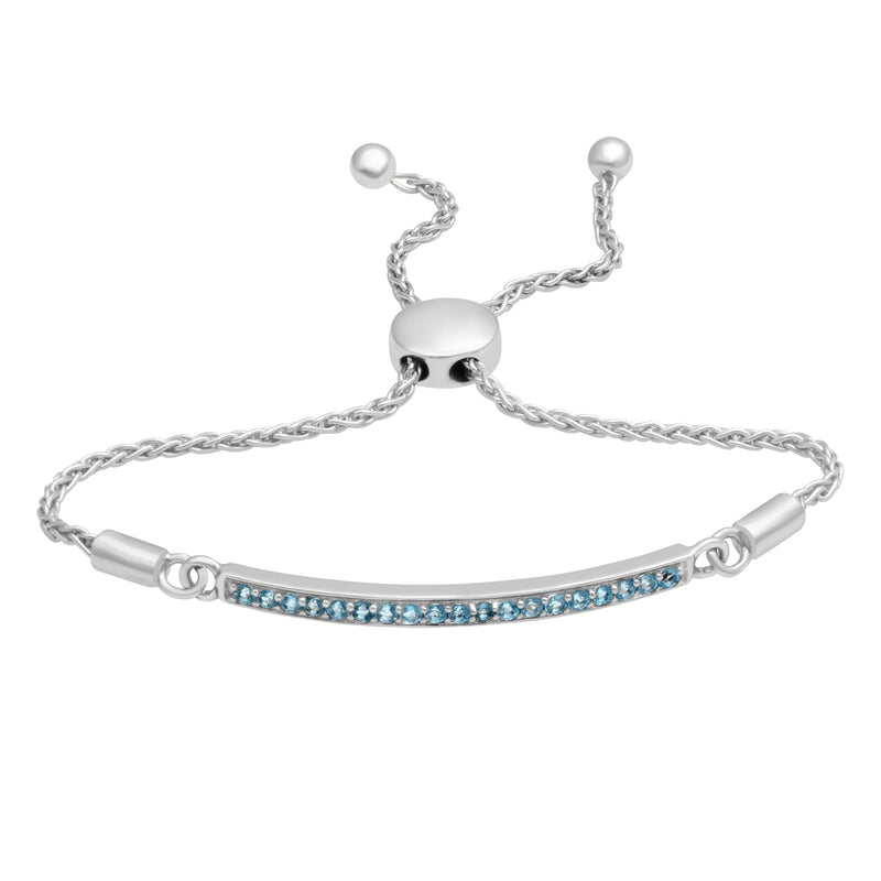 • Load image into Gallery viewer, Jewelili Cubic Zirconia Bolo Bracelet with Round Ice Blue Topaz in Sterling Silver