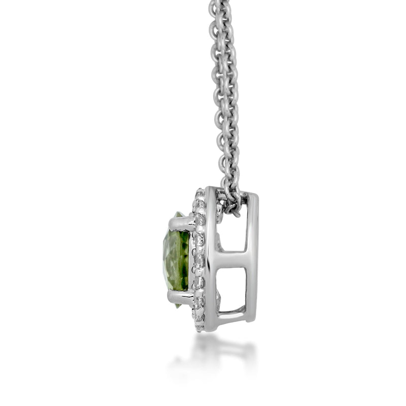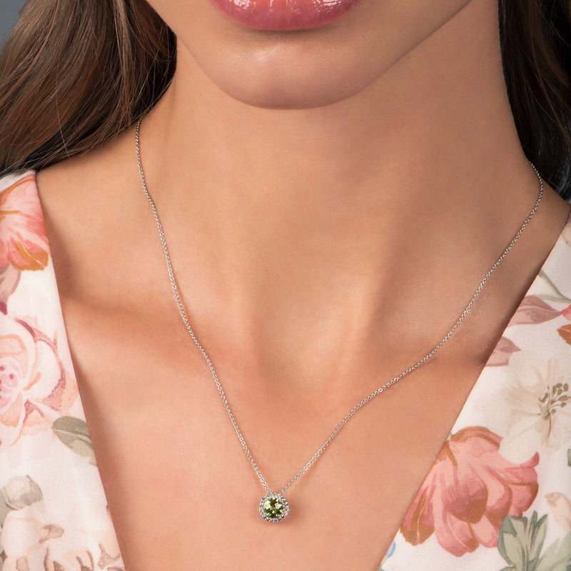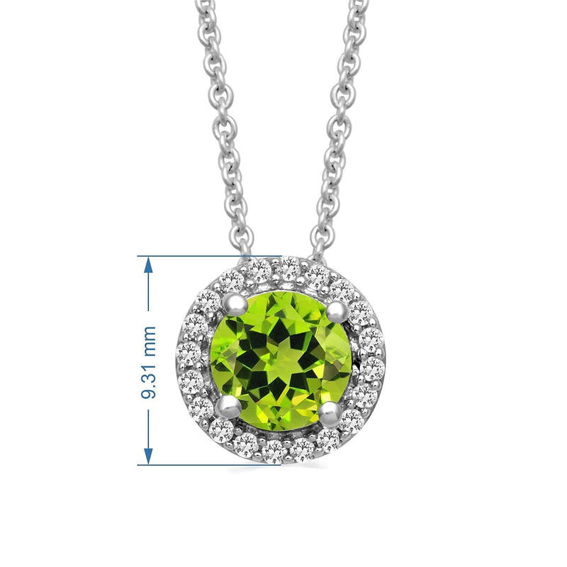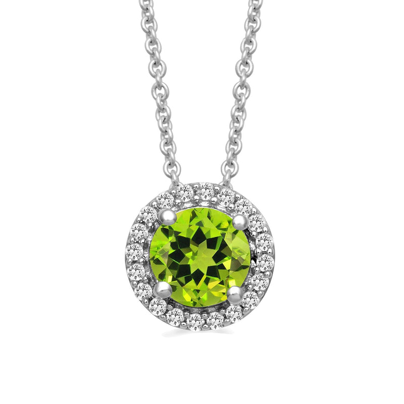 • Sterling Silver with Round Peridot and Created White Sapphire Halo Pendant Necklace