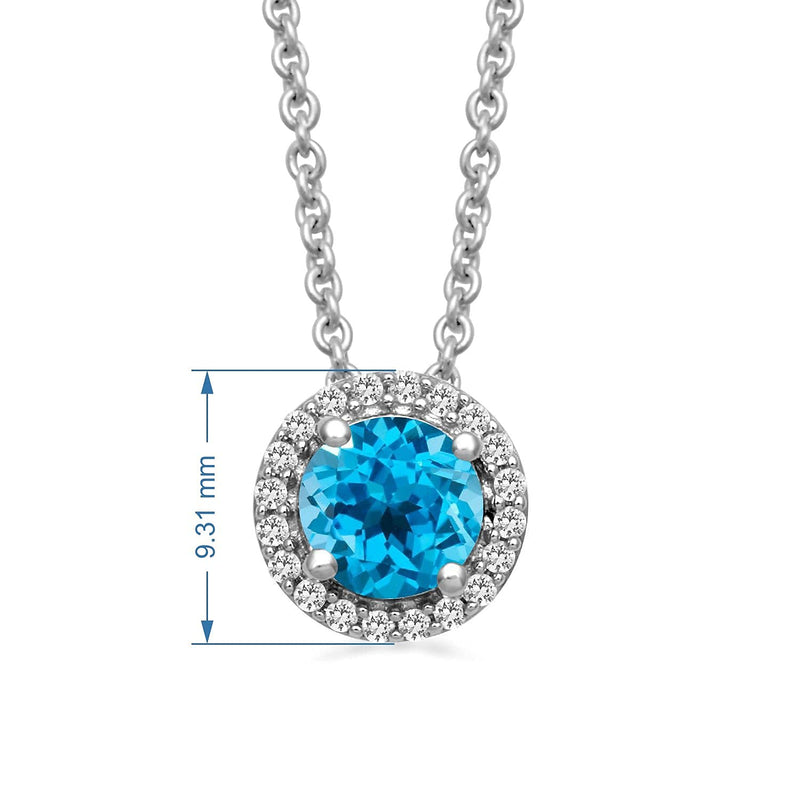• Sterling Silver with Round Swiss Blue Topaz and Created White Sapphire Halo Pendant Necklace