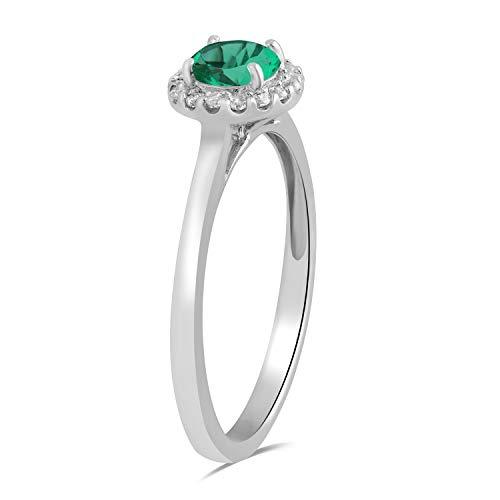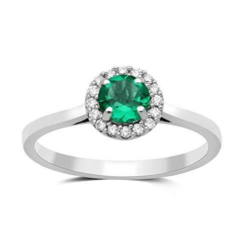 Jewelili Sterling Silver With Simulated Emerald and Cubic Zirconia Halo Ring
