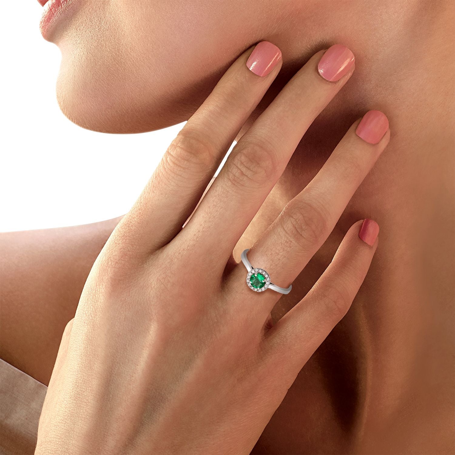 • Load image into Gallery viewer, Jewelili Cubic Zirconia Halo Ring with Simulated Emerald in Sterling Silver View 3