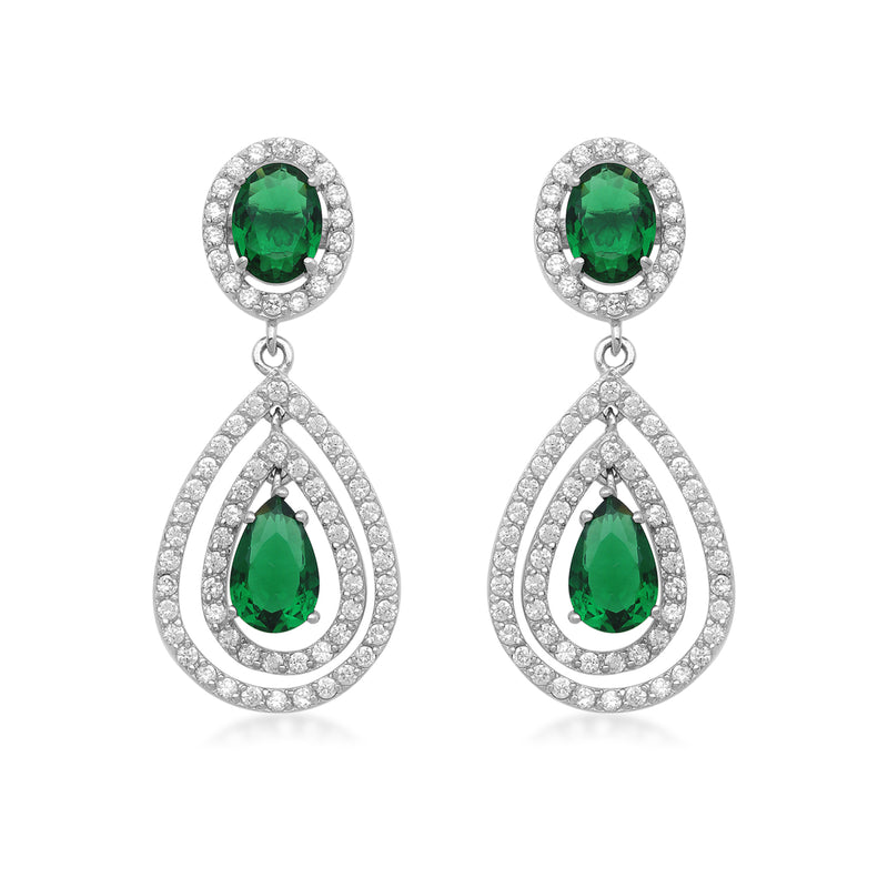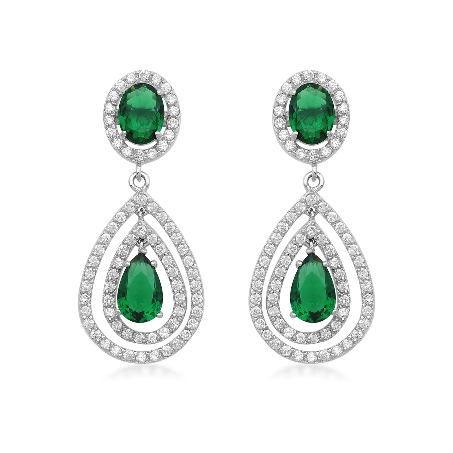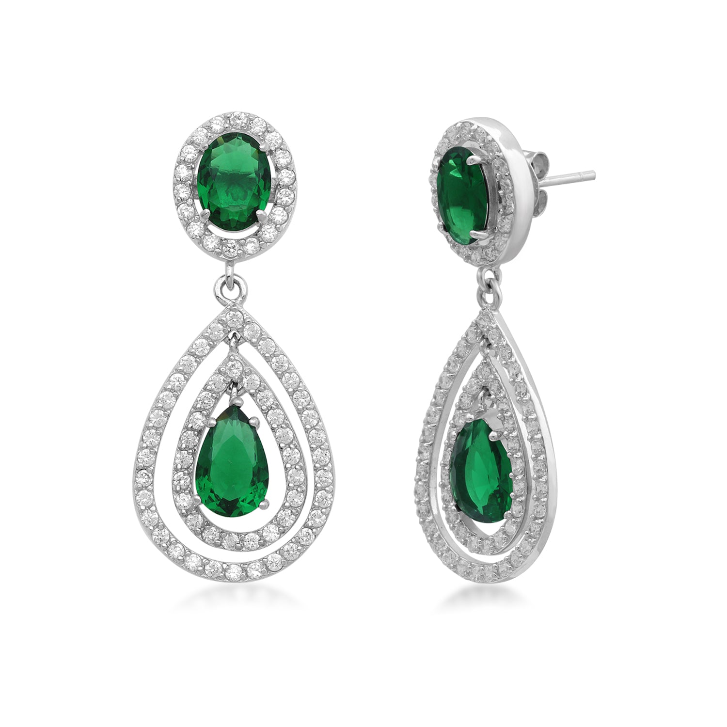 Details: Sterling Silver With Simulated Green Emerald Glass with Round Cubic Zirconia Teardrop Drop Earrings